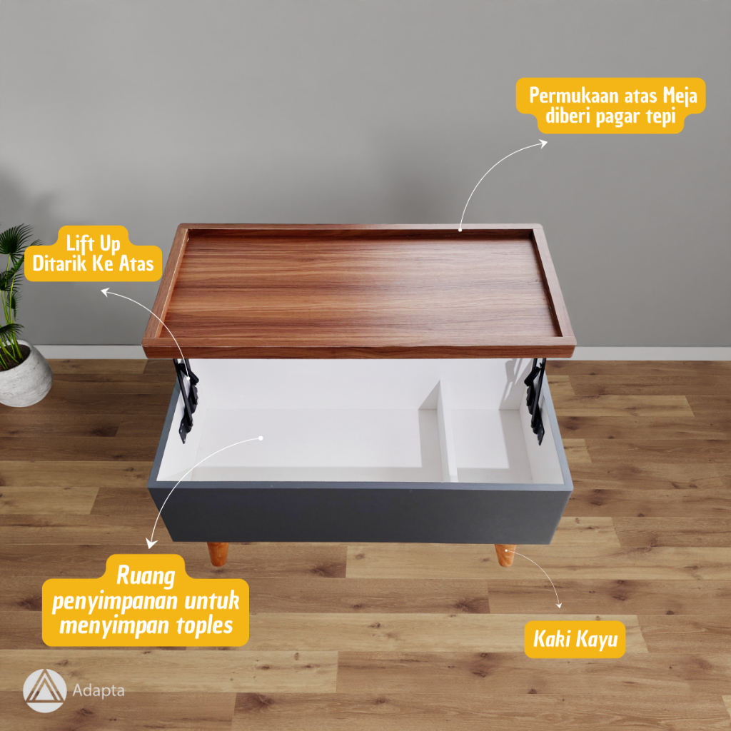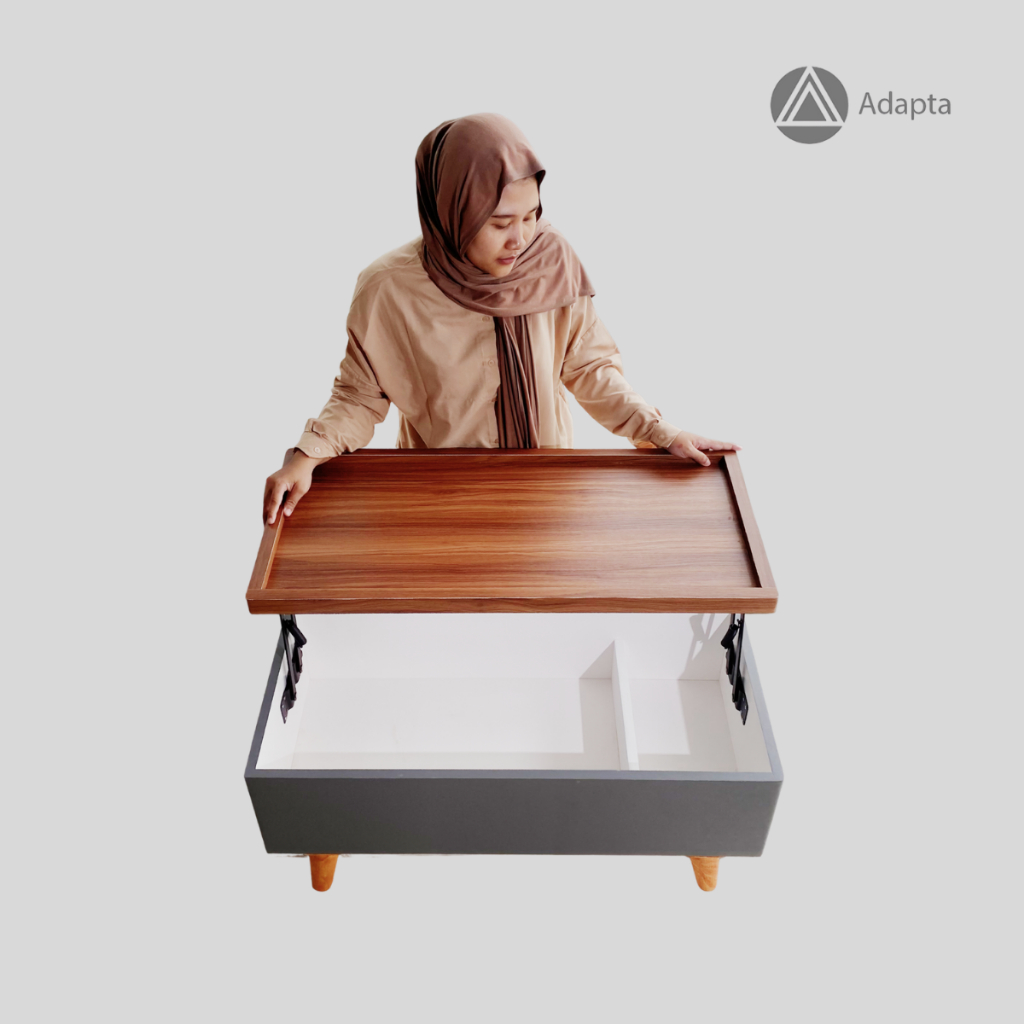 Adapta - Coffee Table Meja Tamu Lift UP Coklat-Abu Minimalis Ukuran 80x40x45 cm - LEVA - E3