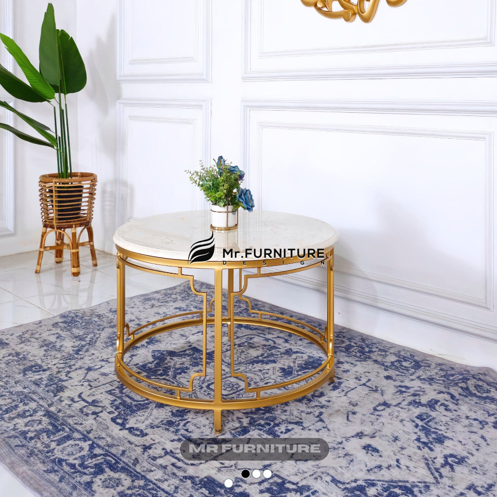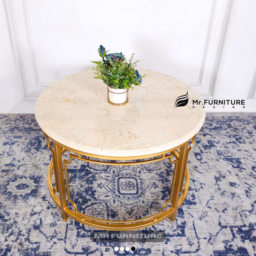 Meja Tamu Bulat Marmer Mewah D72 | Klasik Gold | Coffee Table Estetik Luxury”
