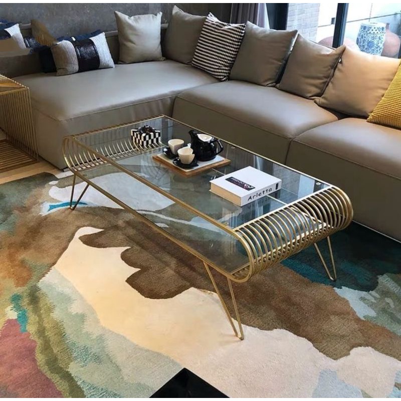 Meja Tamu Konsol Minimalis Besi Galvanis Marmer
