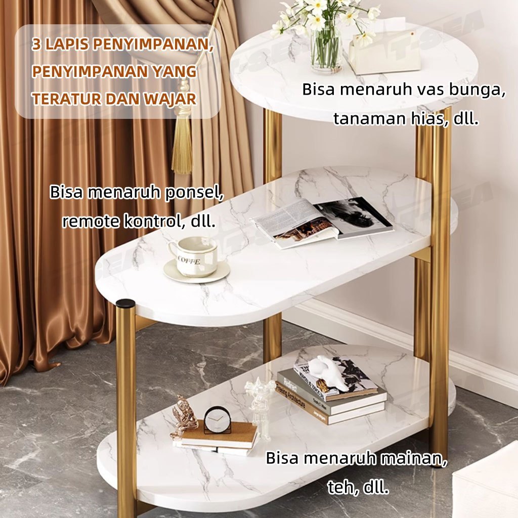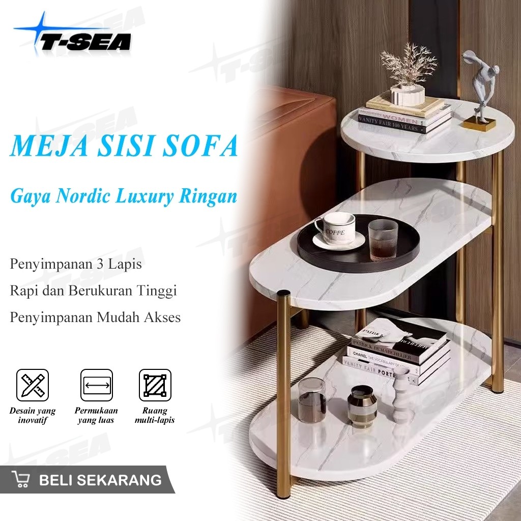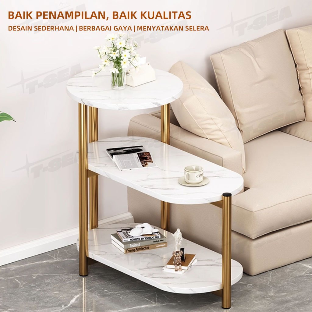 T-SEA Meja Samping Sofa Tiga Tingkat Meja Minimalis Furniture Ruang Tamu Meja Nakas Multifungsi
