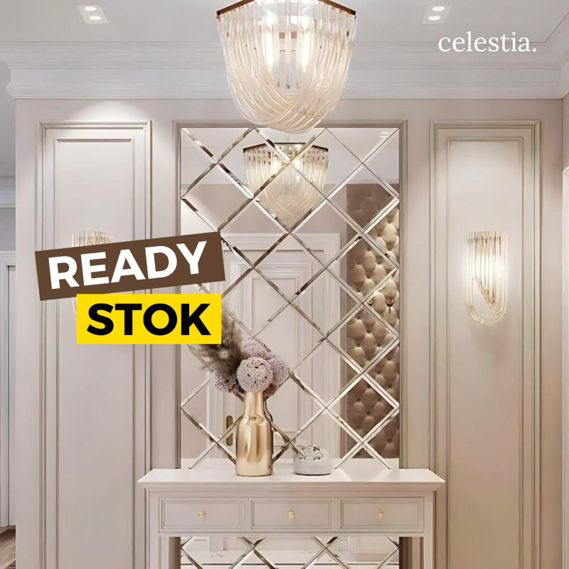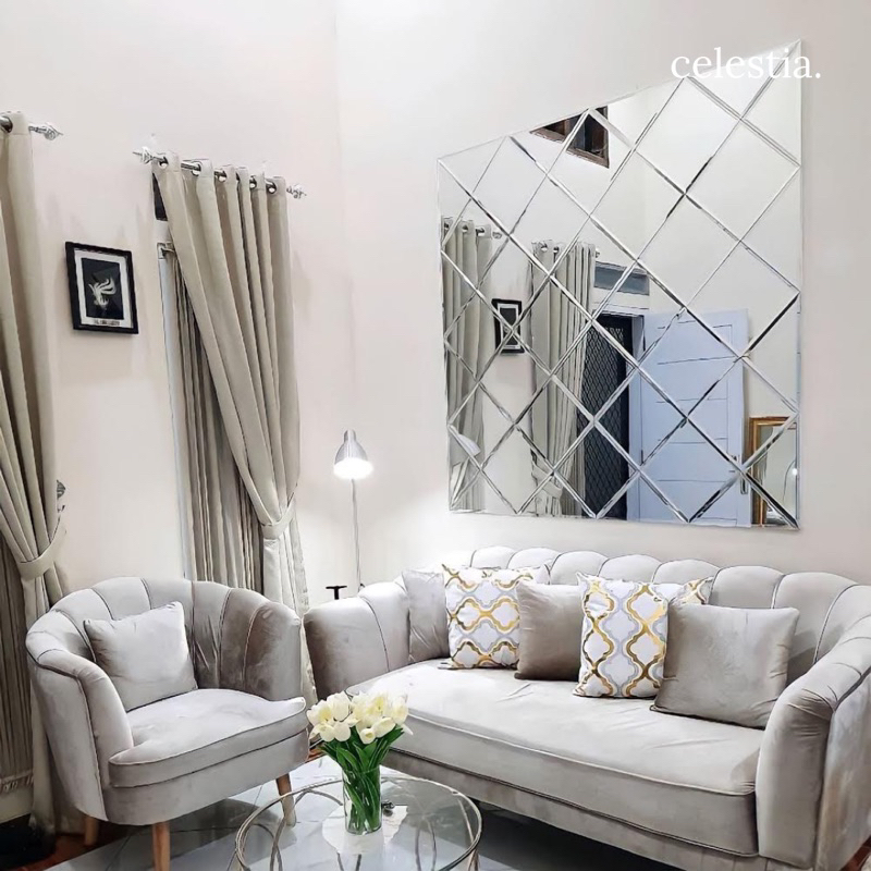 Custom Cermin Kaca Bevel Dekorasi Dinding Kekinian Bentuk Wajiq Aesthetic Mirror Free Packing