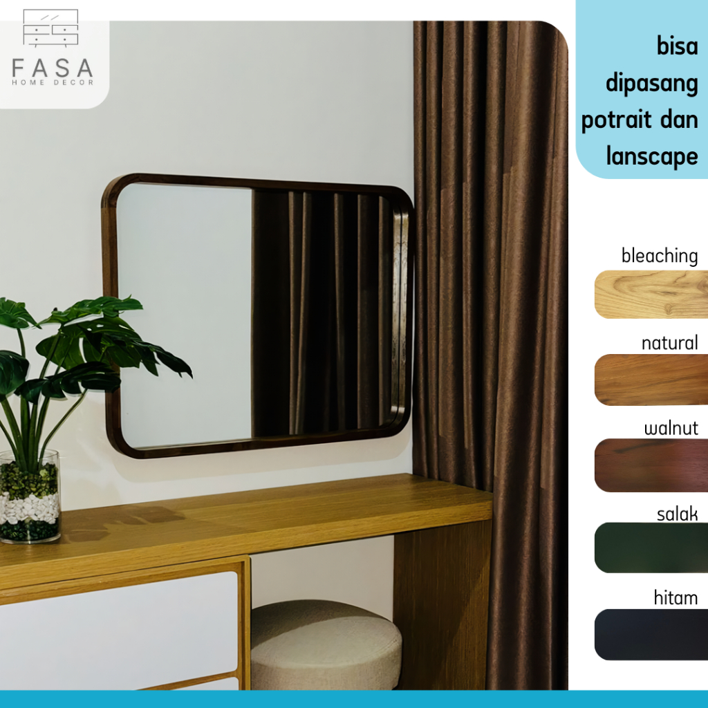 Cermin Kayu Jati Kotak Persegi Panjang – Cermin Dinding Hias Minimalis Estetik untuk Kamar