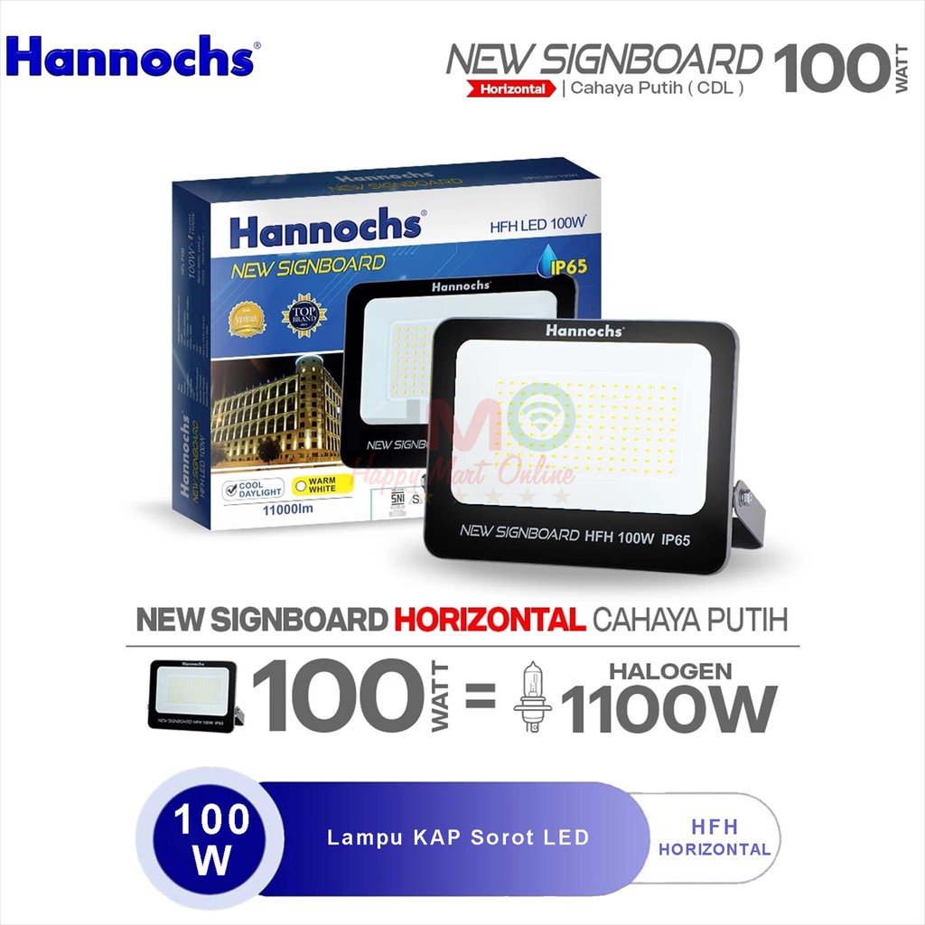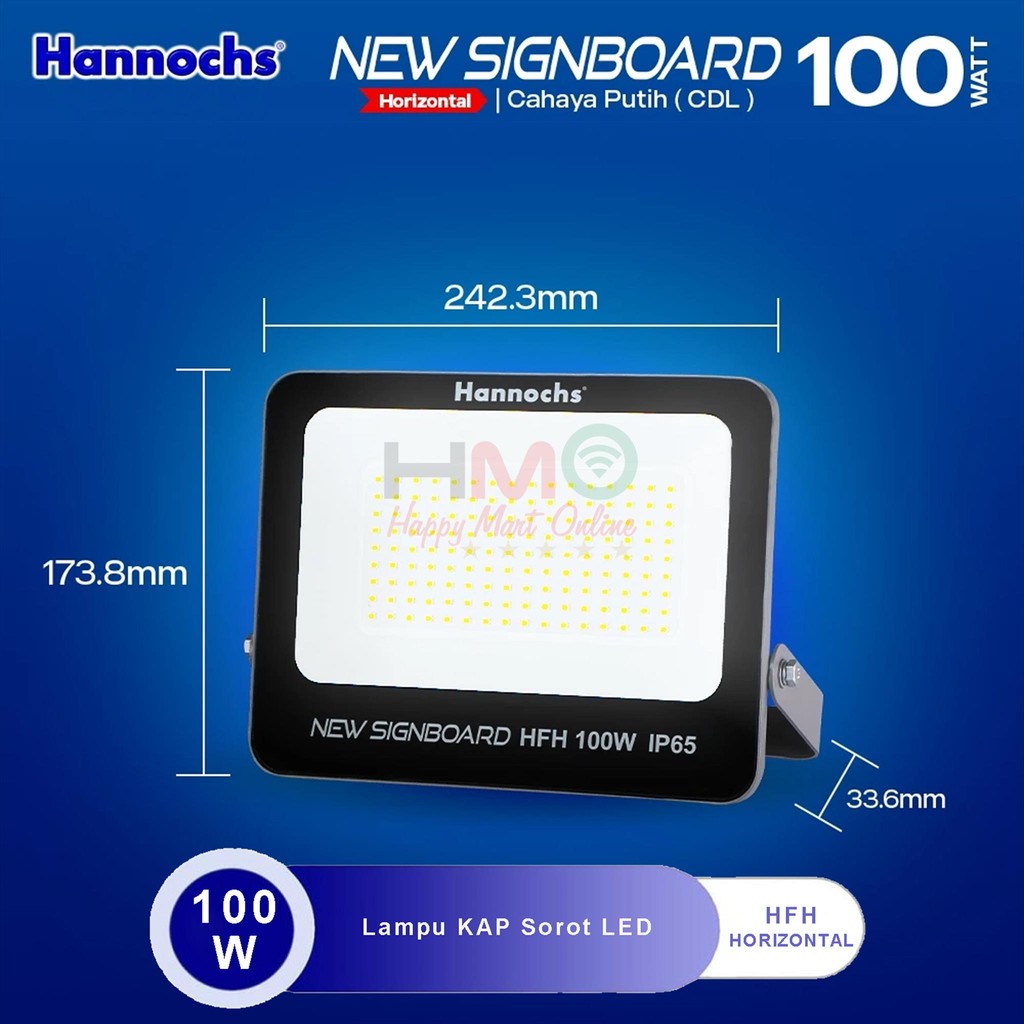 Hannochs Lampu Sorot 100 Watt Cahaya Putih HFH-100W CDL Kap Sorot Waterproof 100W Flood Light LED Lampu Tembak