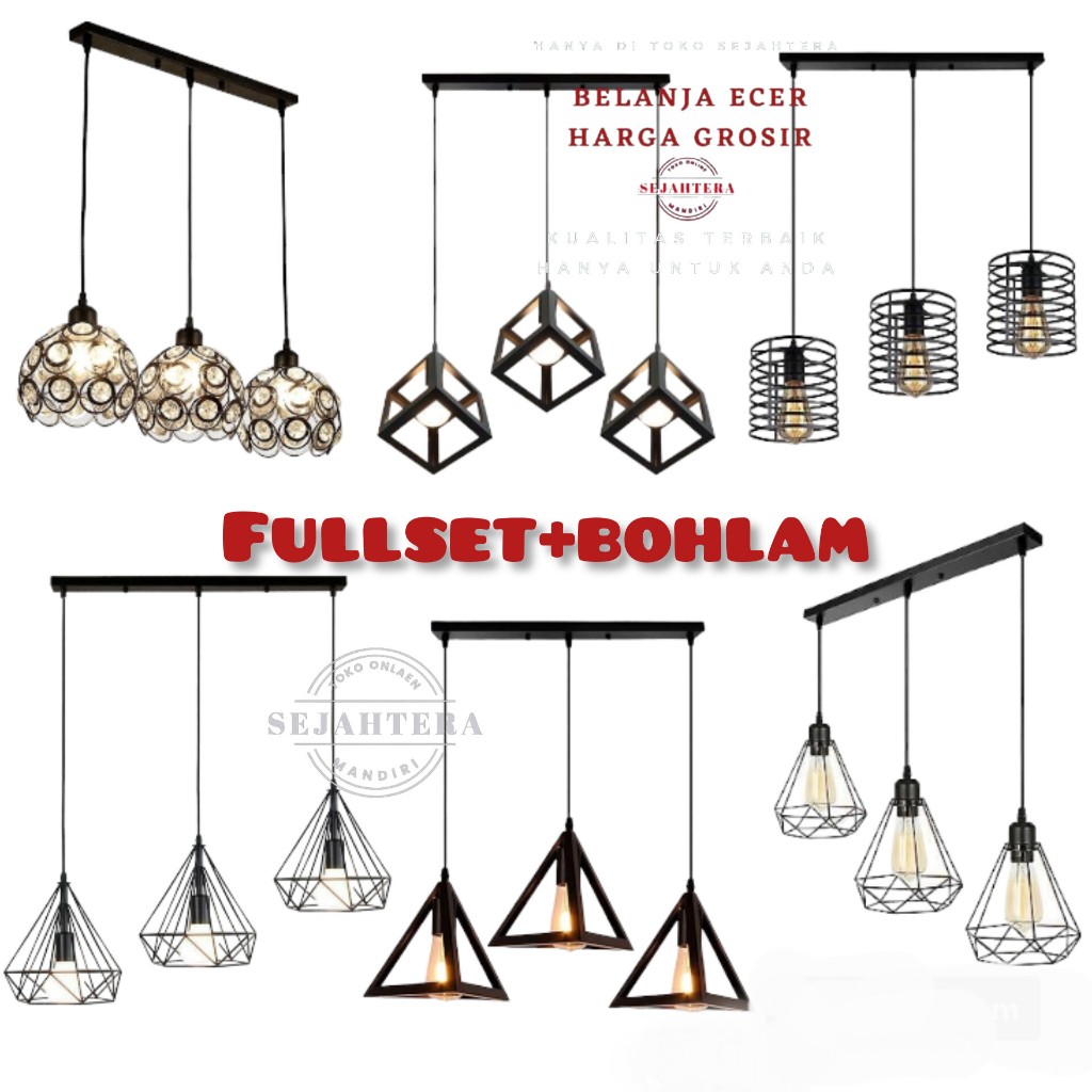 Fullset lampu hias gantung cabang3 panjang