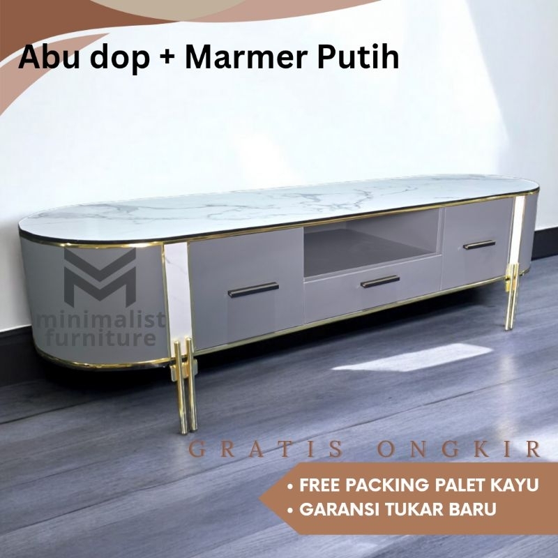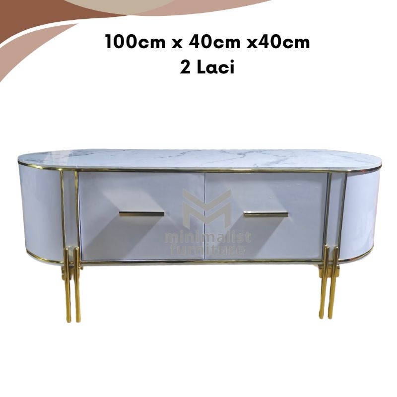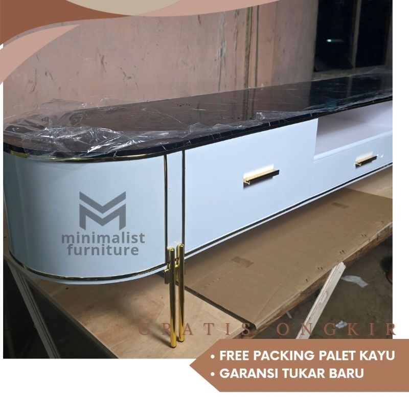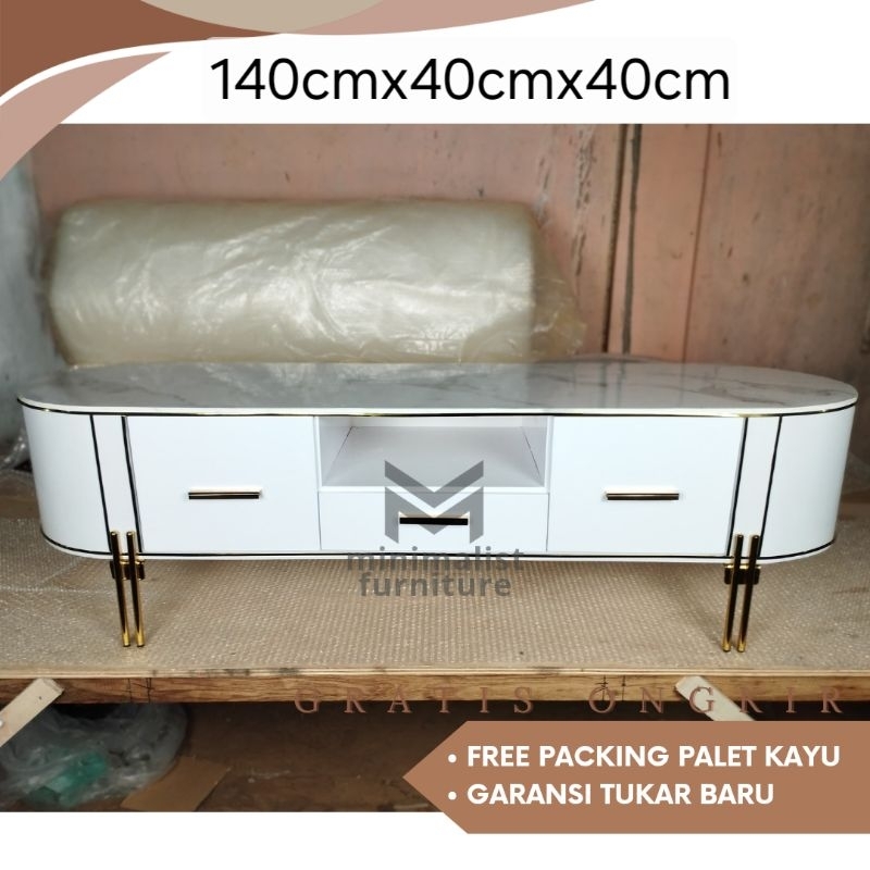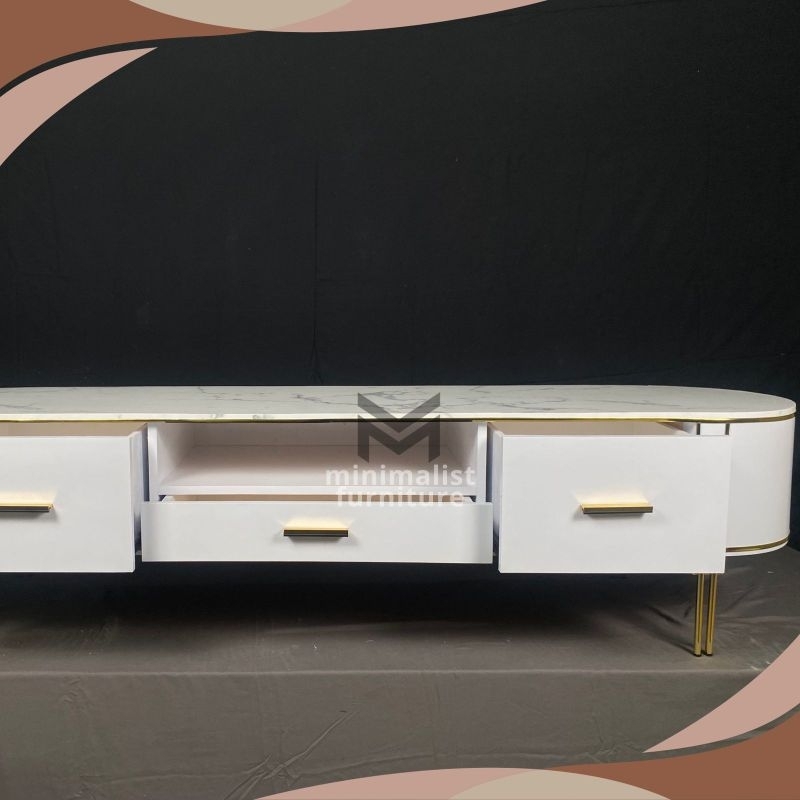 Produk Meja TV Buffet TV Meja Ruang Tamu modern minimalist Putih list gold