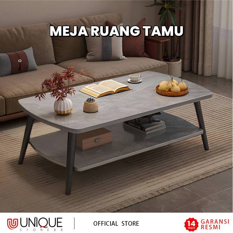 Meja Tamu Minimalis Modern Meja Ruang Tamu Dua Tingkat Penyimpanan Multifungsi Bahan Kayu Solid Kokoh