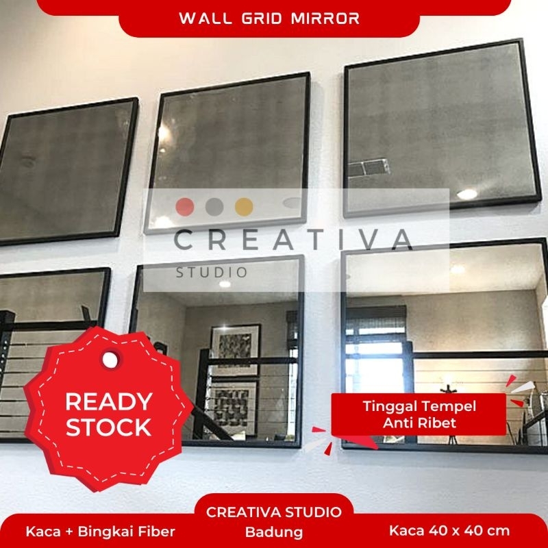 Creativa PAKET Kaca Cermin Susun Tinggal Tempel Dekorasi Dinding Kotak 40x40 cm Model Industrial