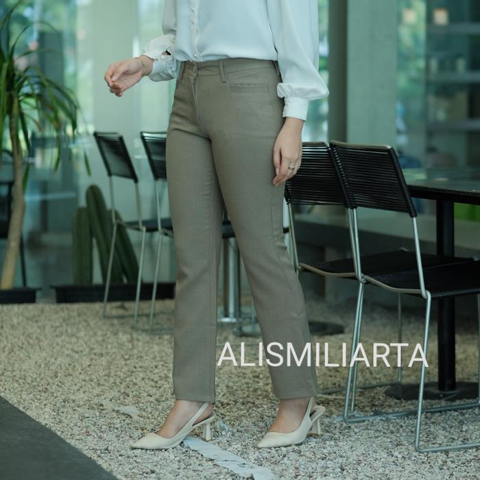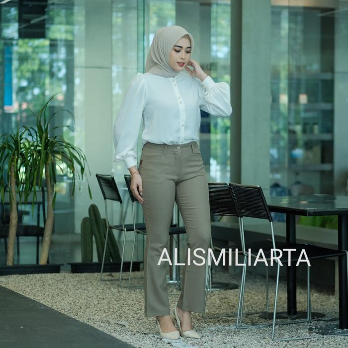 Cutbray Fazila Celana Formal Wanita Kain Melar Medium Stretch Nyaman Kancing Tebal Variasi Simple Cut Bray - Hitam, S