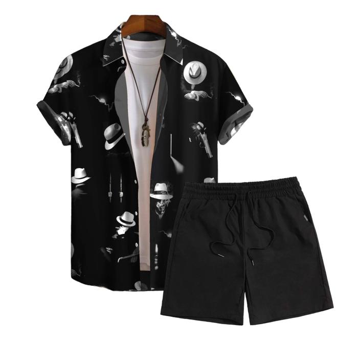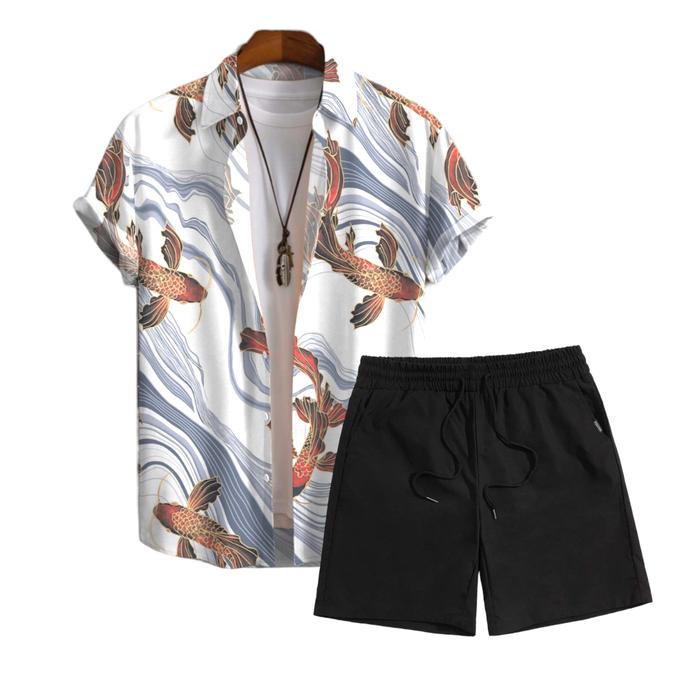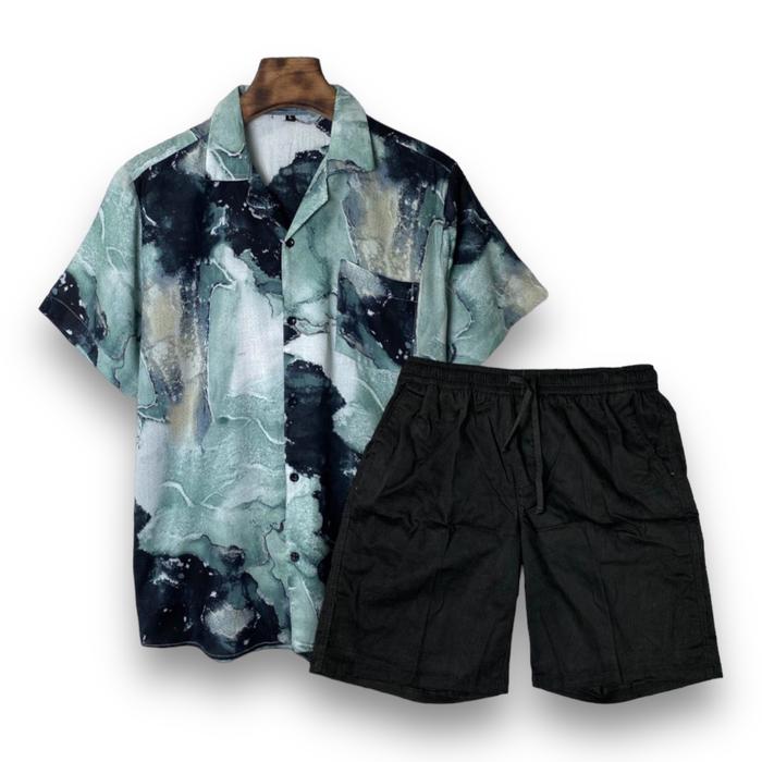 Clustercool One Set Kemeja Motif Abstrak Celana Pendek Boardshot Premium Lengan Pendek Keren Panjang Pria Santai Casual