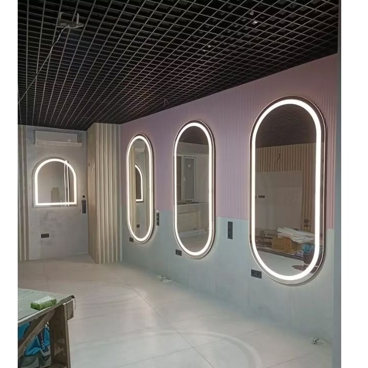 Kaca cermin led aesthetic cermin kapsul led gantung tempel dinding wastafel kamar mandi cermin ful body