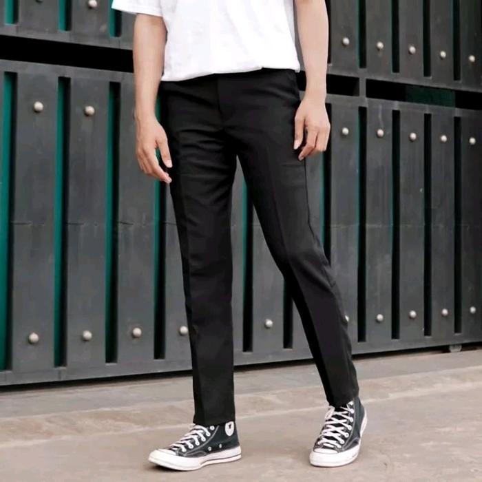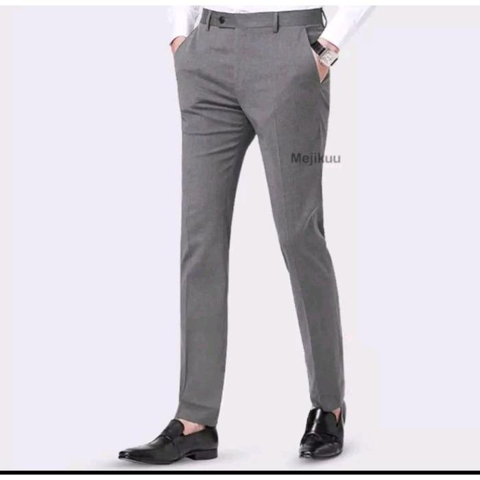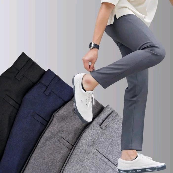 Celana Panjang Pria Slim Fit Celana Kantor Formal Pria Calana Kerja Bahan Semi Woll Kain Standar Navy Muda Hitam Abu -