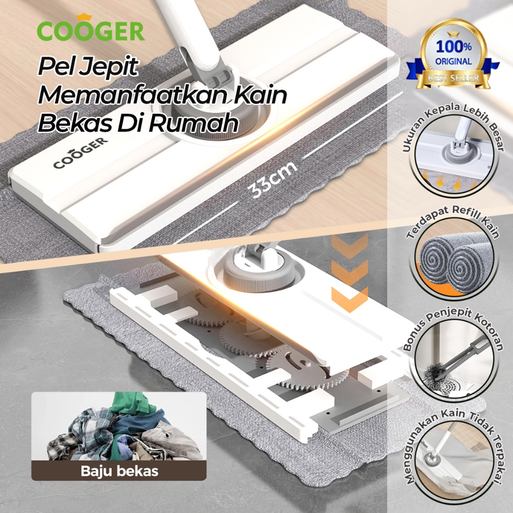 COOGER Pel Lantai Jepit Kain Baju Lap Pel Klip Serbaguna Gagang Panjang Untuk Jendela Lantai Mobil