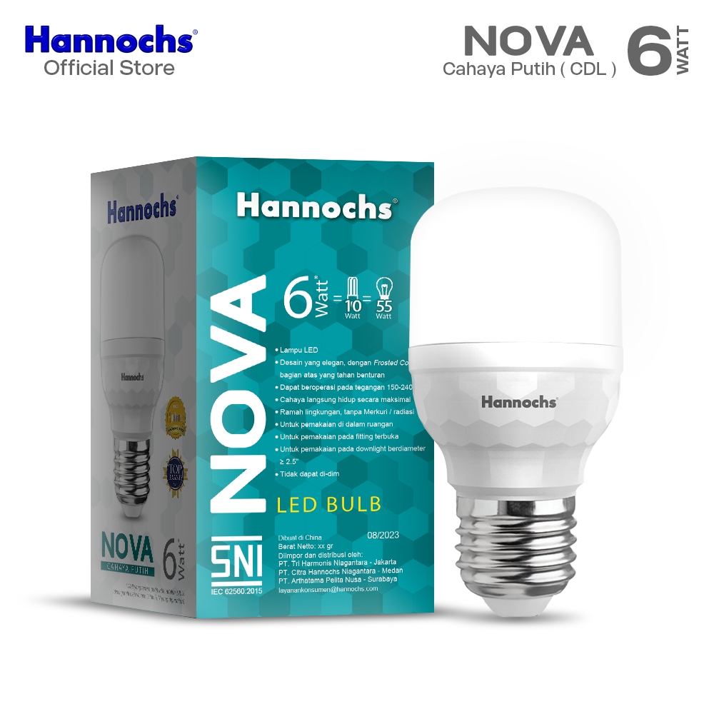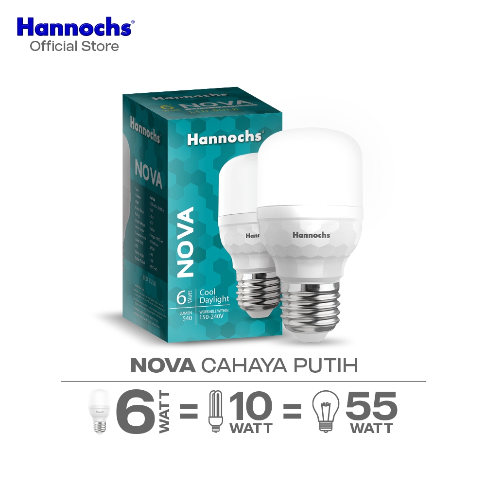 Hannochs Lampu Bohlam LED NOVA 6W Cahaya Putih Paket isi 10pcs