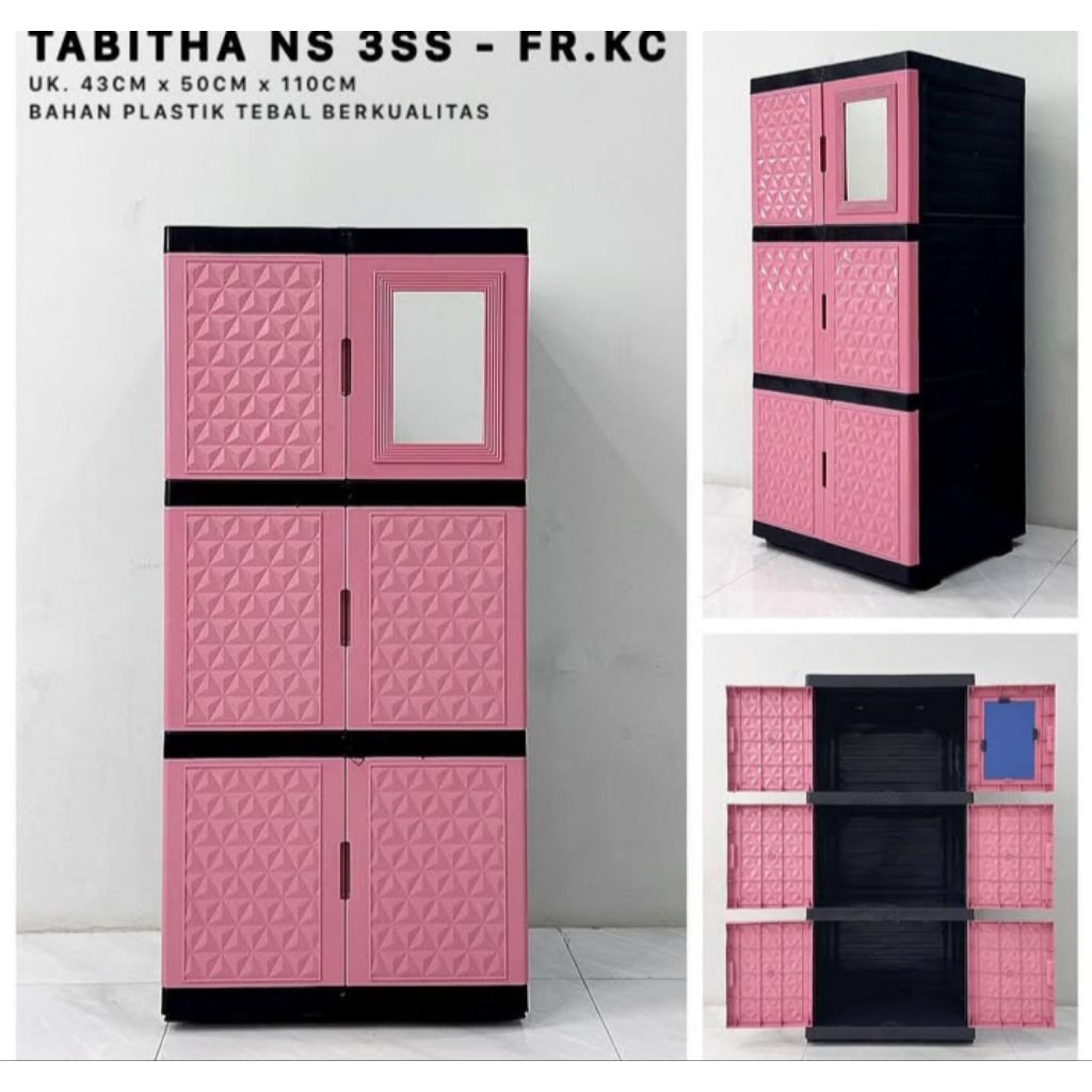 Lemari Pakaian Plastik Tabitha 3 Susun Kaca