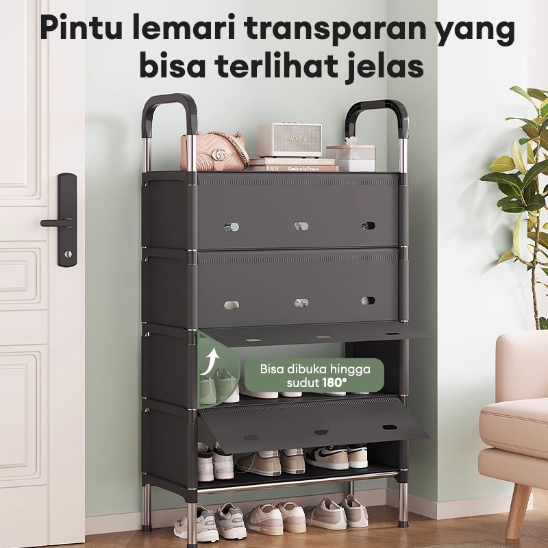 Rak Sepatu Anti Debu Hitam/Putih Rak Sandal Dan Sepatu Rak Penyimpanan Dengan Penutup Hitam/Putih
