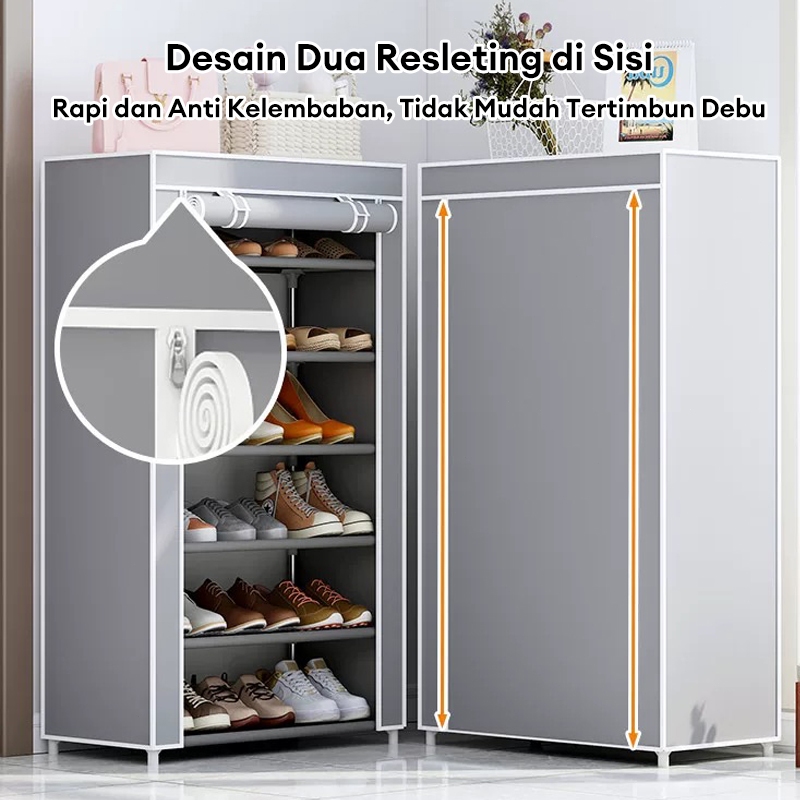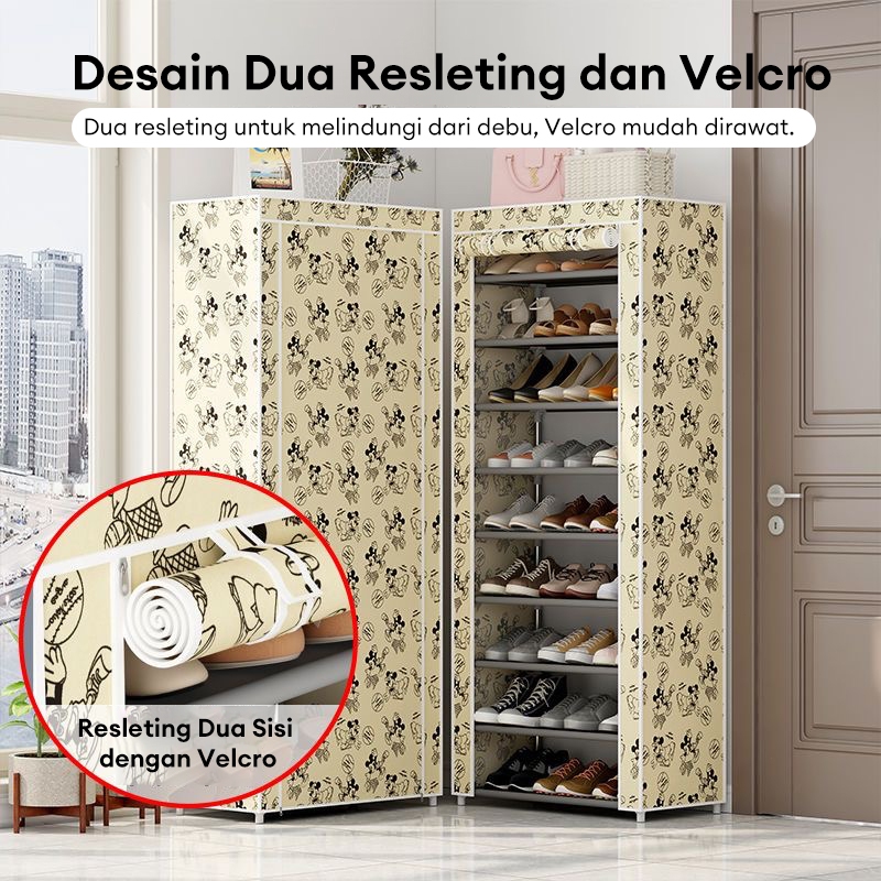 Rak Sepatu Kain 10 Susun Cover Debu Shoes Rack Portable Rak Sepatu Lipat