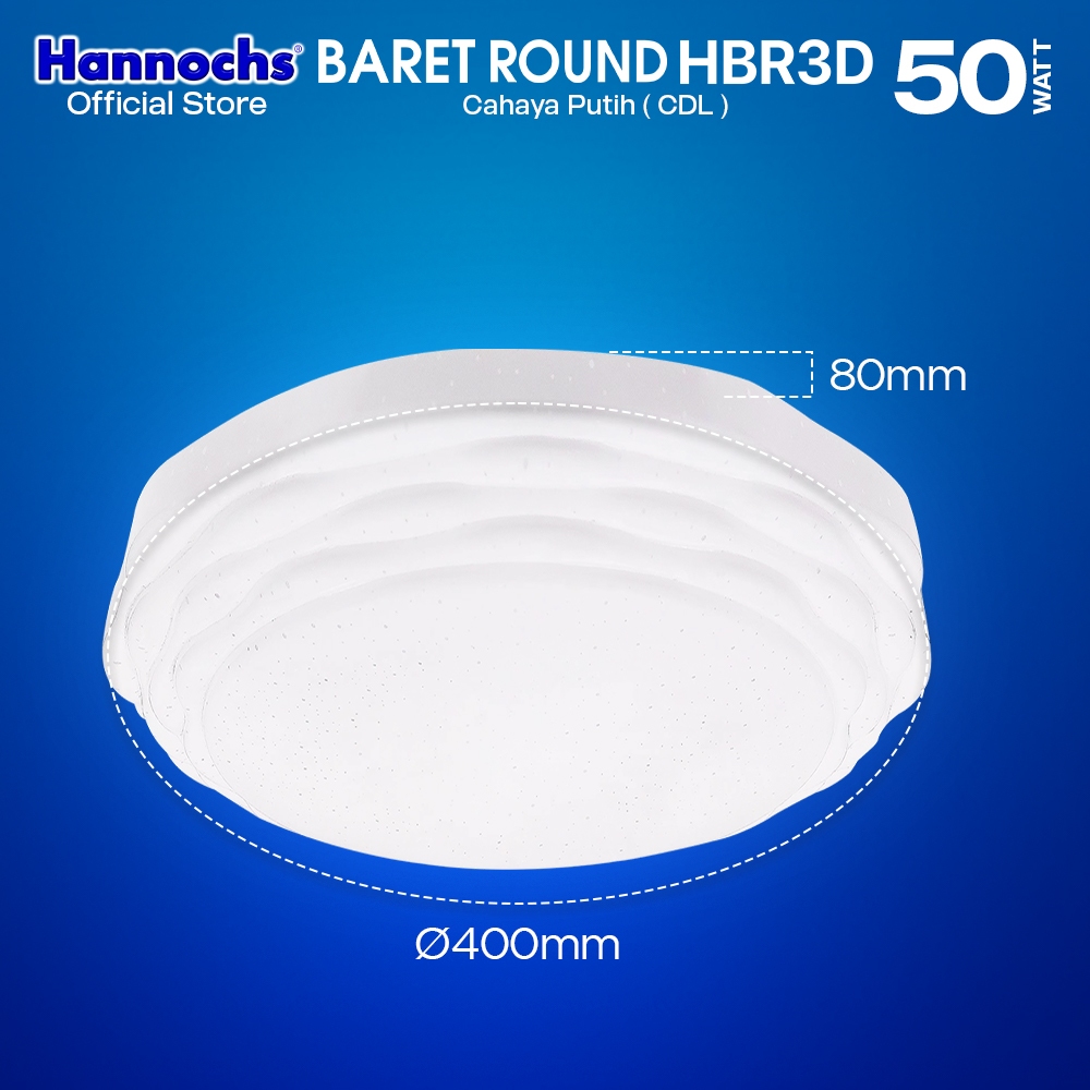 Hannochs Lampu Downlight LED Baret Round HBR3D Ombak 50W Cahaya Putih