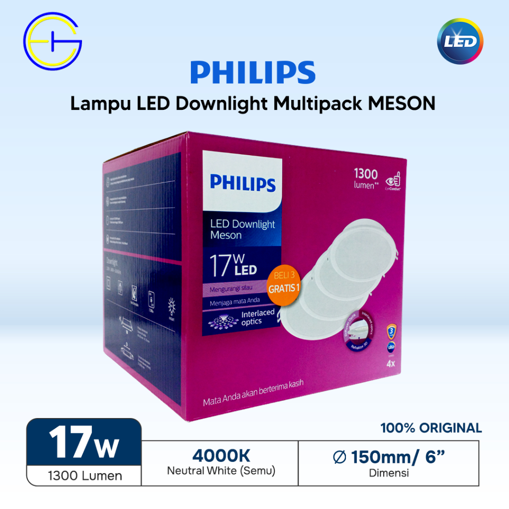 Lampu LED Downlight Pack isi 4 MESON 59466 Philips D150 17W G5
