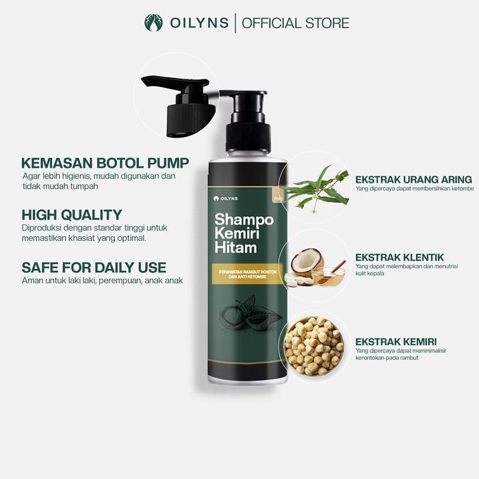 [BUNDLING] Oilyns Minyak Kemiri Bakar PLUS 100gr & Shampo Hitam 100ml – Penumbuh Rambut Melebatkan & Anti Rontok