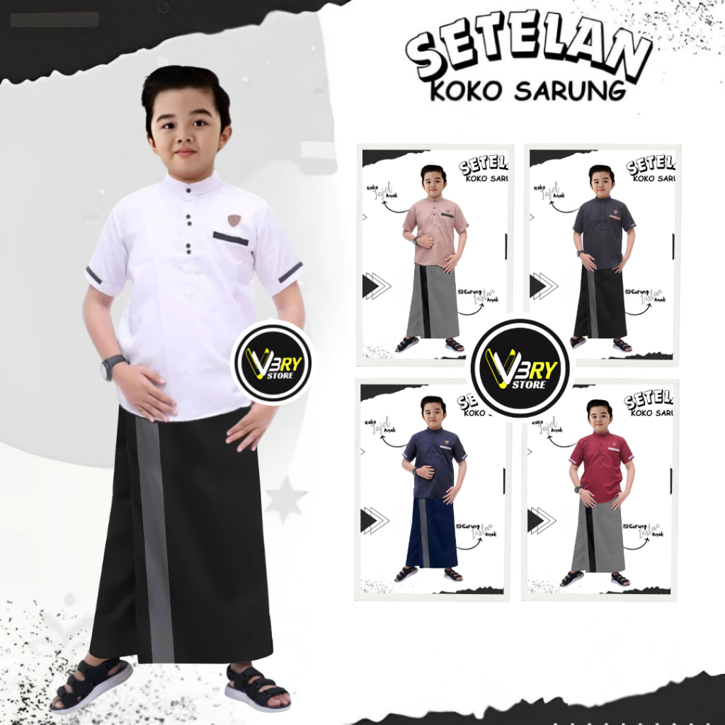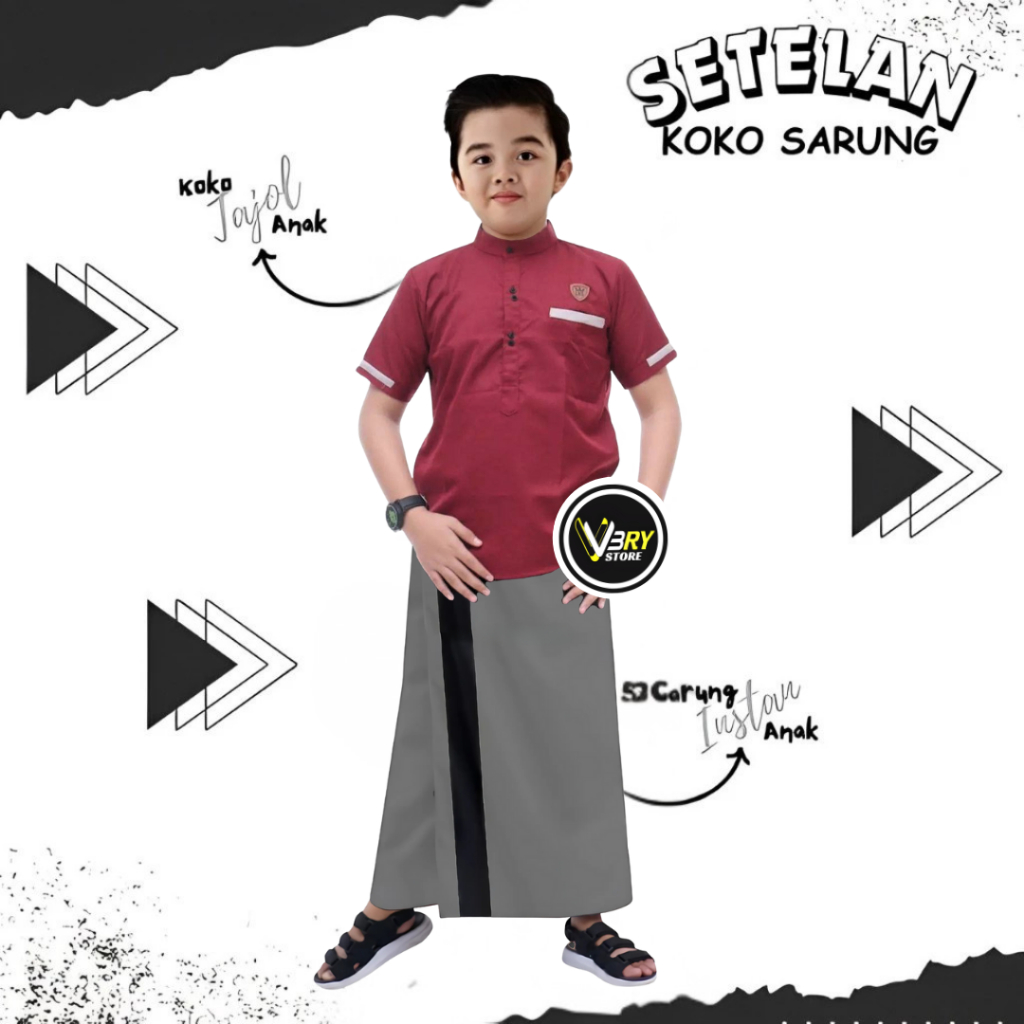 Paket Lengkap Setelan SARKO anak kokoTajol Terbaru Usia 3-13 tahun sarung Koko banyak Warna