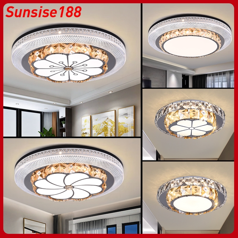 Lampu Plafon Kristal LED 3 Warna Lampu Plafon Hias Bulat Lampu Hias Ruang Tamu Kamar Tidur