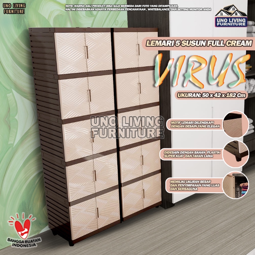 LEMARI PAKAIAN KINGDOM VIRUS 3 SUSUN LEMARI PINTU KABINET LEMARI PLASTIK MINIMALIS - FULL CREAM