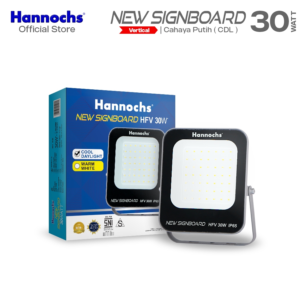 Hannochs Lampu Sorot LED Flood Light New Signboard HFV 30W Cahaya Putih (Model Vertikal)