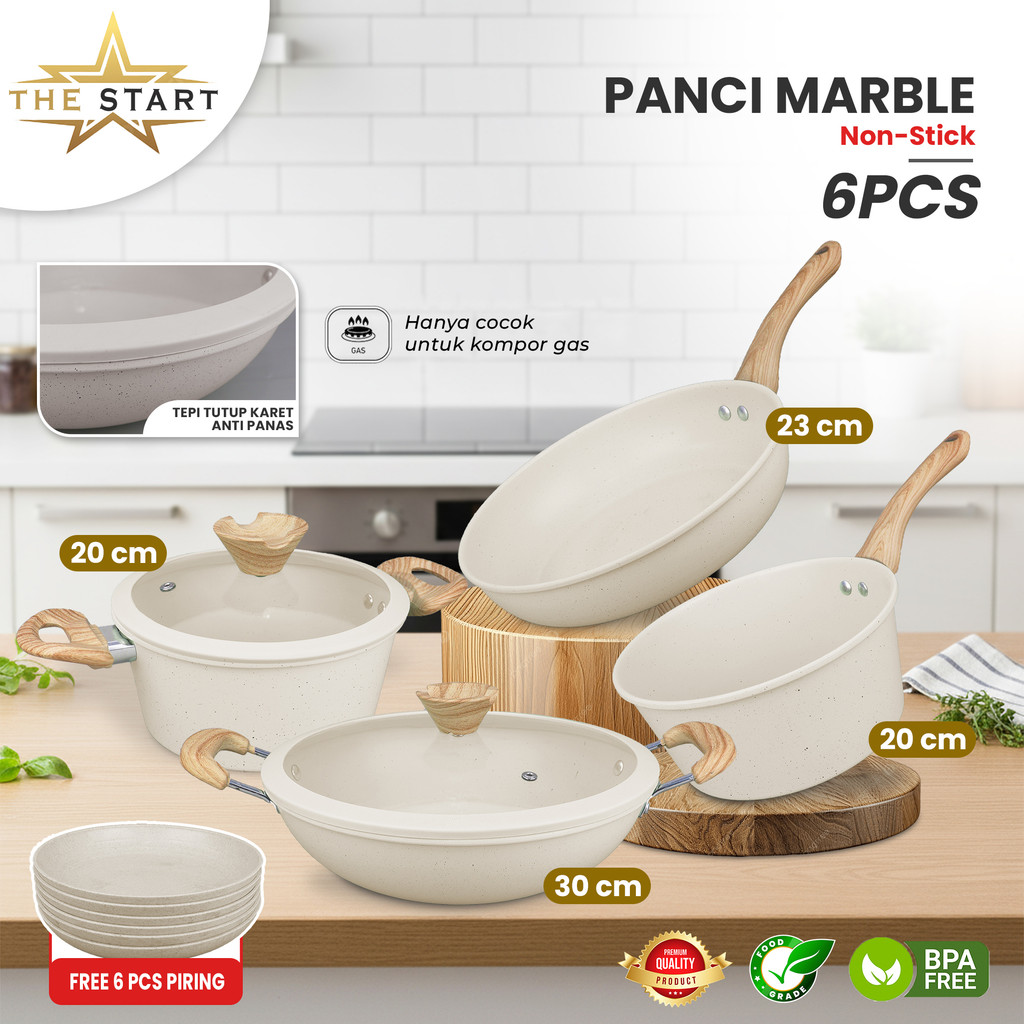 (FREE PIRING)Panci Marble Set 6 pcs Anti Lengket - Panci Wajan Serbaguna Estetik untuk Semua Jenis Kompor