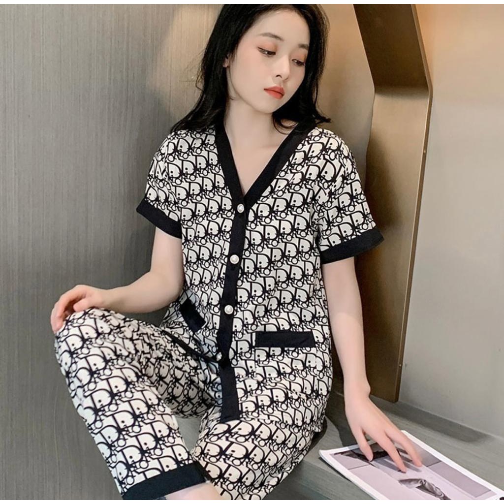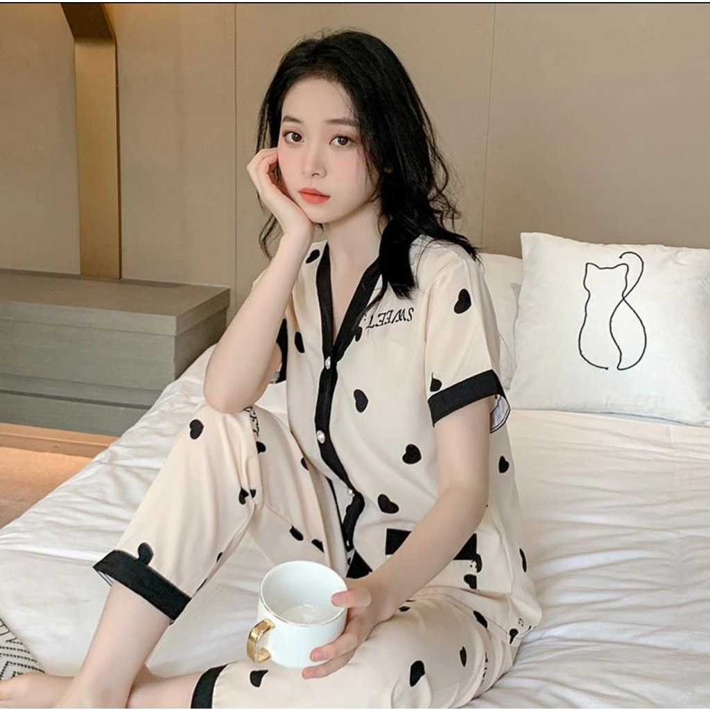 Baju Tidur Wanita Dewasa Kancing Design Pearl Lengan Pendek IMPORT Best Quality