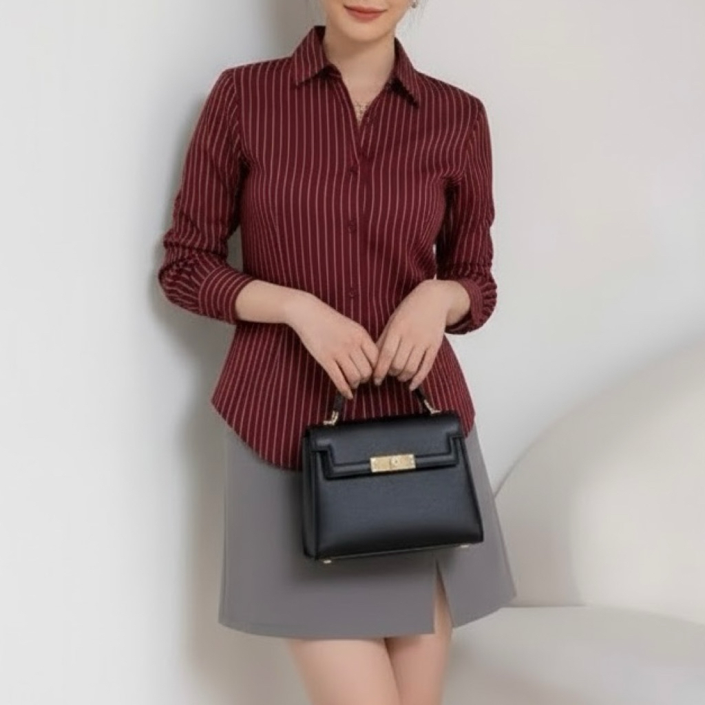 Luna Stripe Kemeja Fitted - Kemeja Wanita Salur Premium - Kemeja WanitaTerbaru - Atasan Wanita Kekinian