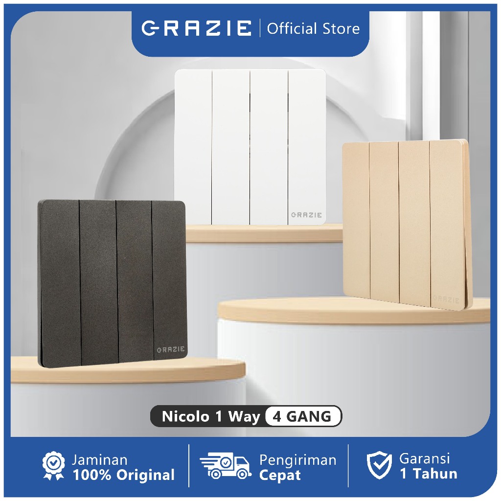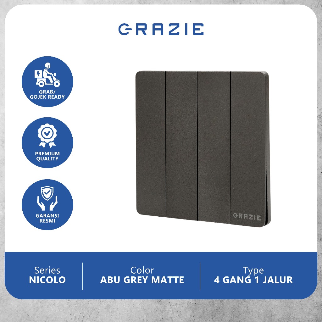 Grazie Nicolo g0ldd Gray Black Series Saklar 4 Gang 1 Arah Saklar Lampu 1 Way