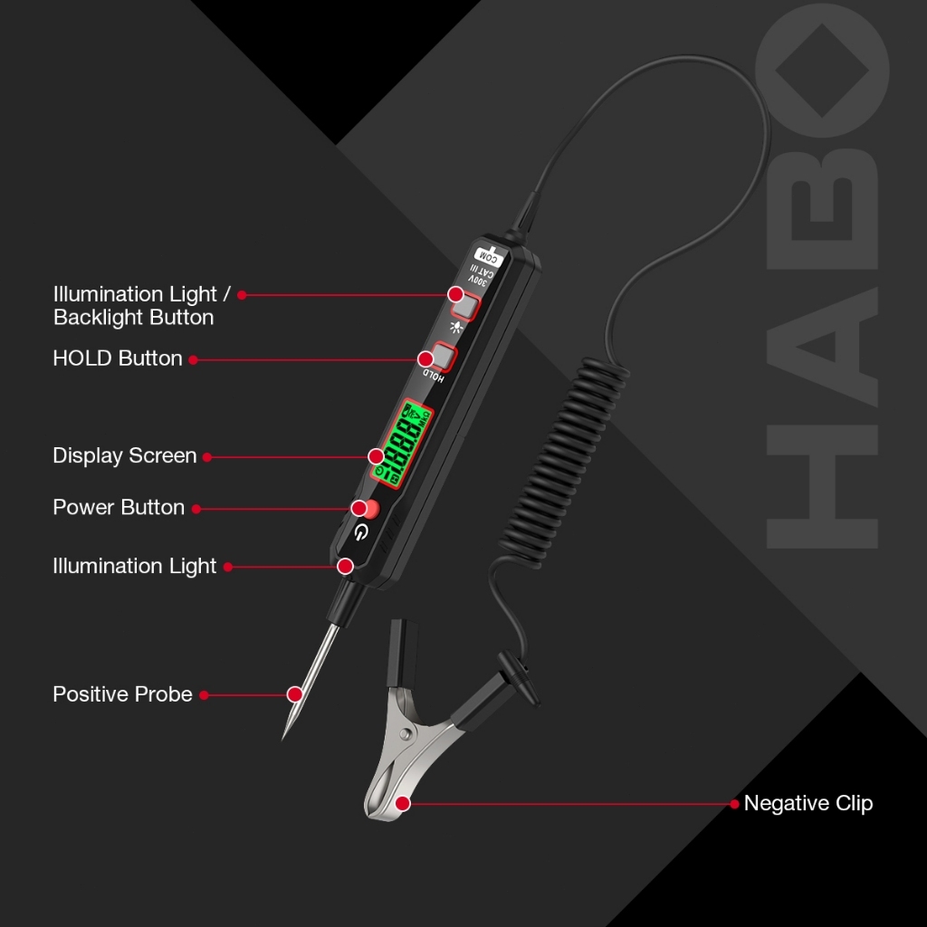 HABOTEST HT86A Penguji Sirkuit Mobil Tampilan Digital Pena Deteksi Tegangan Perbaikan Pena Tes Lcd Khusus Lampu Deteksi