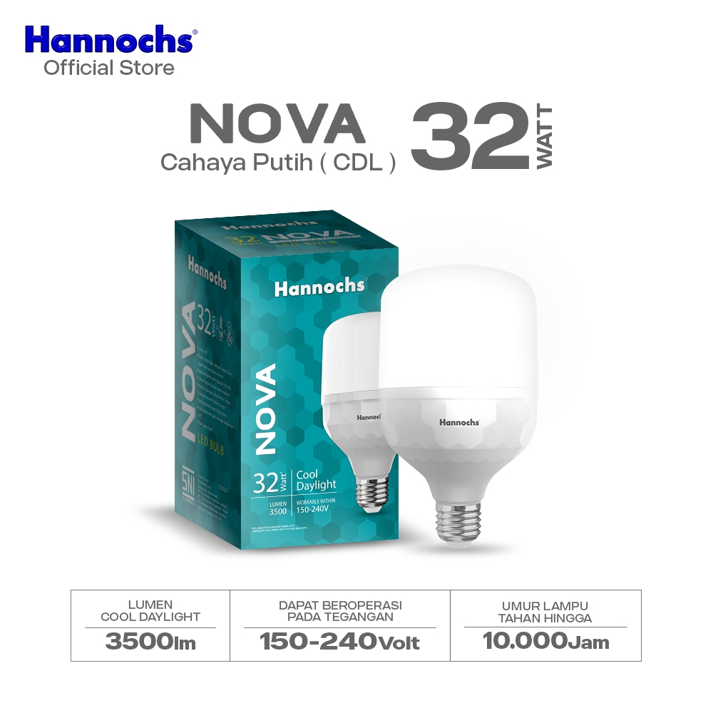 Hannochs Lampu Bohlam LED Nova 32W Cahaya Putih Paket isi 3pcs