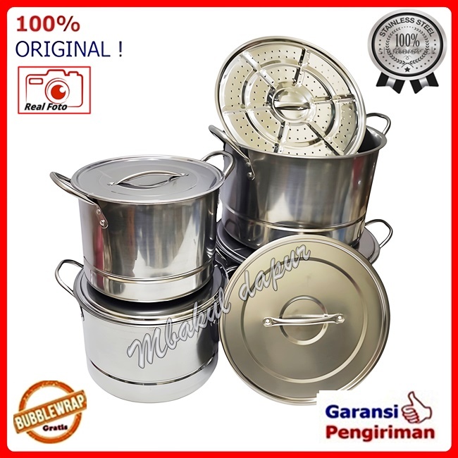 Panci Stainless Tinggi Plus Steamer Panci Liwet Nasi Dandang Kukus Nasi Stockpot Stainless