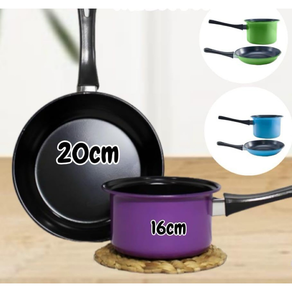 Set Panci Omicko Frypan 20cm & Panci Susu 16 cm - Anti Lengket , Tahan Lama