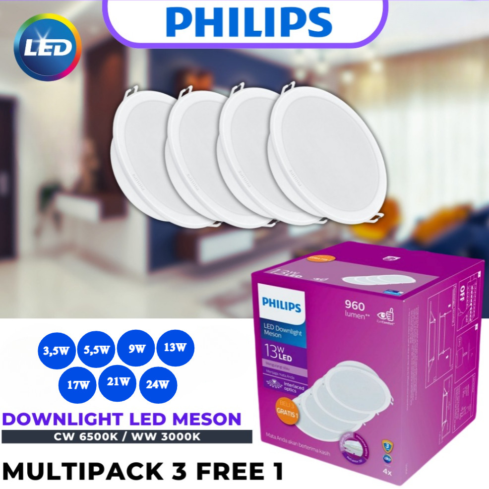 PHILIPS Downlight MESON Multipack 3,5W 5W 9W 13W 17W 21Watt 24 Watt 6500k (Beli 3 Gratis 1)