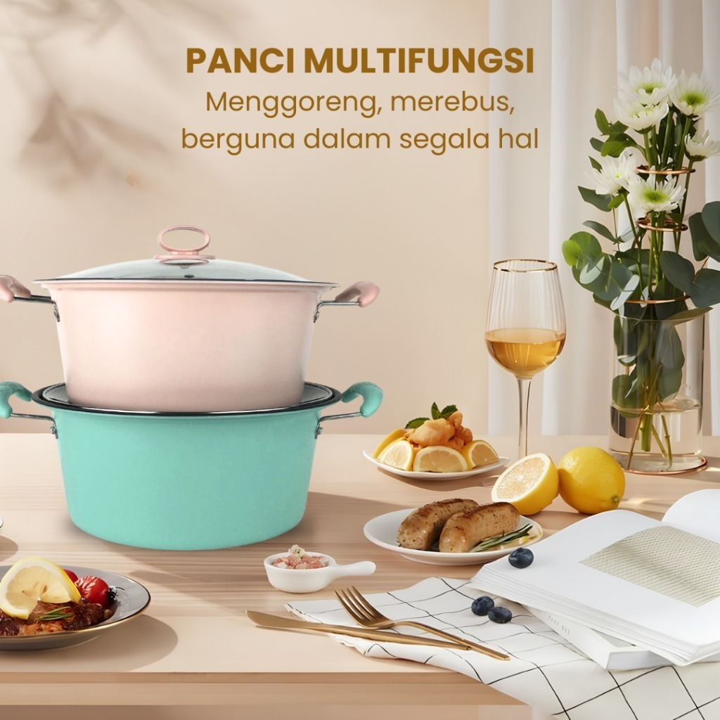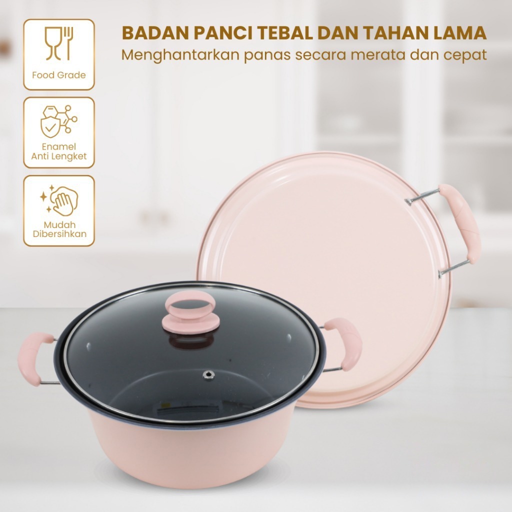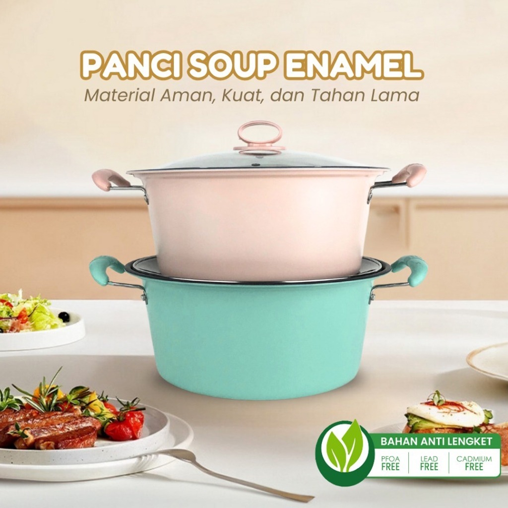 Panci sup enamel dengan tutup kaca/panci sup 20cm dan 22cm 18CM/24CM mudah dibersihkan