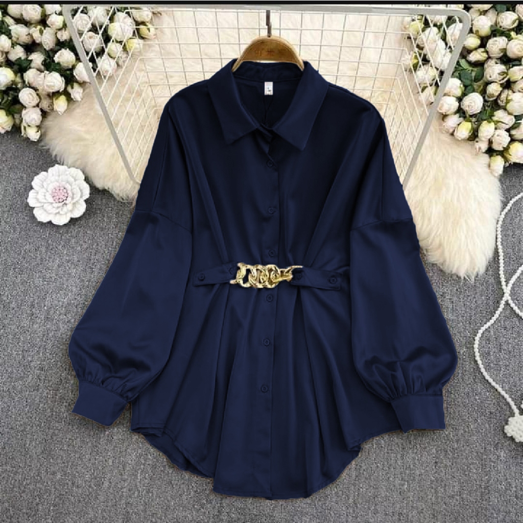 Atasan Kemeja Wanita Polos Motif Rantai Lengan Balon Korean Style MELDA Oversize Jumbo M L XL XXL