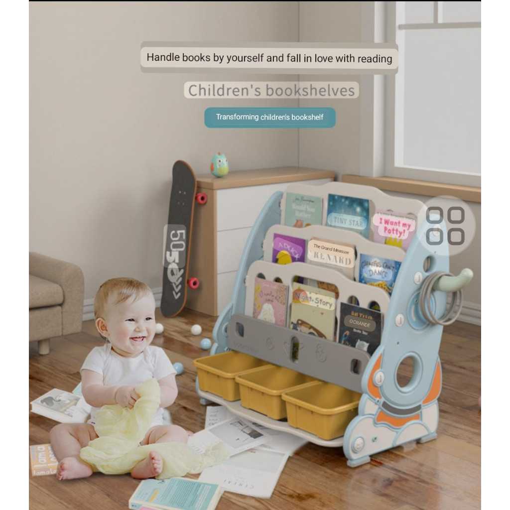 RAK BUKU ANAK 5 SUSUN ROKET DISPLAY BOOKSHELFT/TEMPAT MAINAN MONTESORI