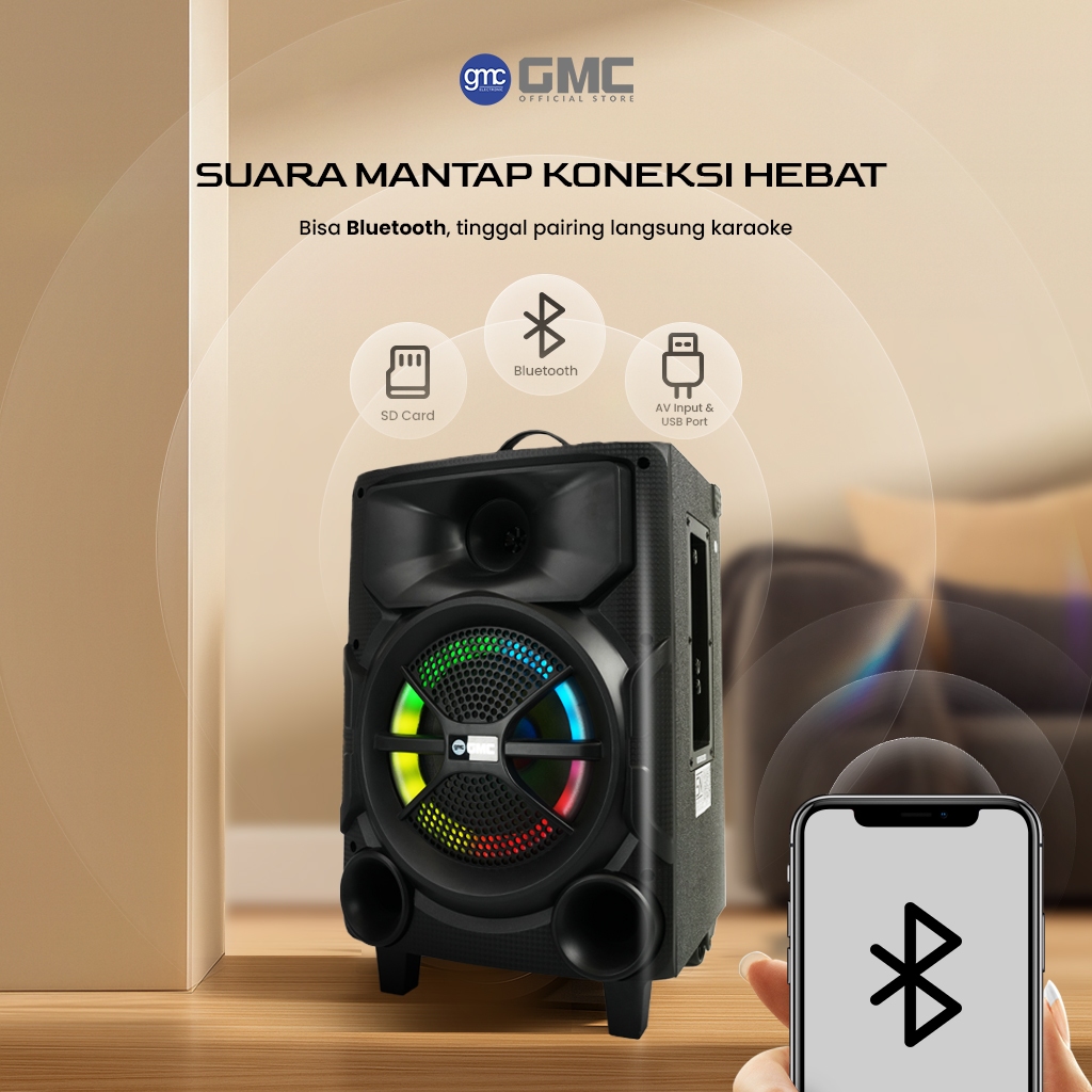 SPEKER AKTIF BLUTUT GMC SPEAKER 897Y PRO BLUETOOTH KARAOKE SPEAKER 8" 150W, USB, SD, AV IN, FM RADIO, KARAOKE JACK ORI