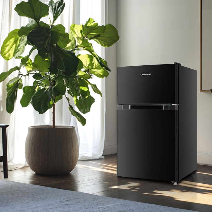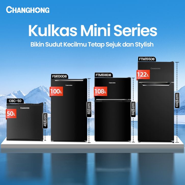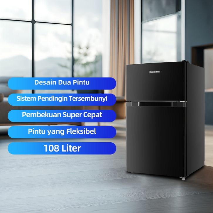 NEW CHANGHONG KULKAS 2 PINTU MINI (REFRIGERATOR) LEMARI ES KAPASITAS 108 LITER - BLACK FTM108DB (SEMI DEFROST)