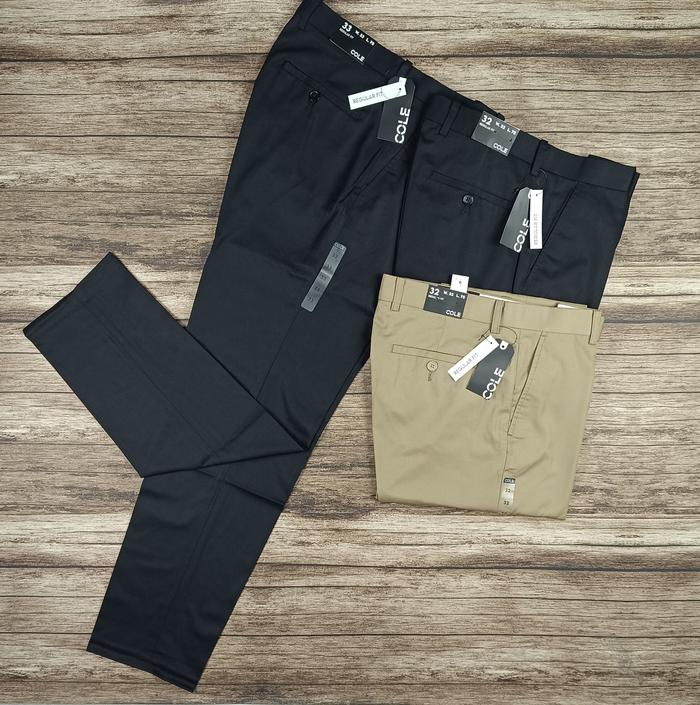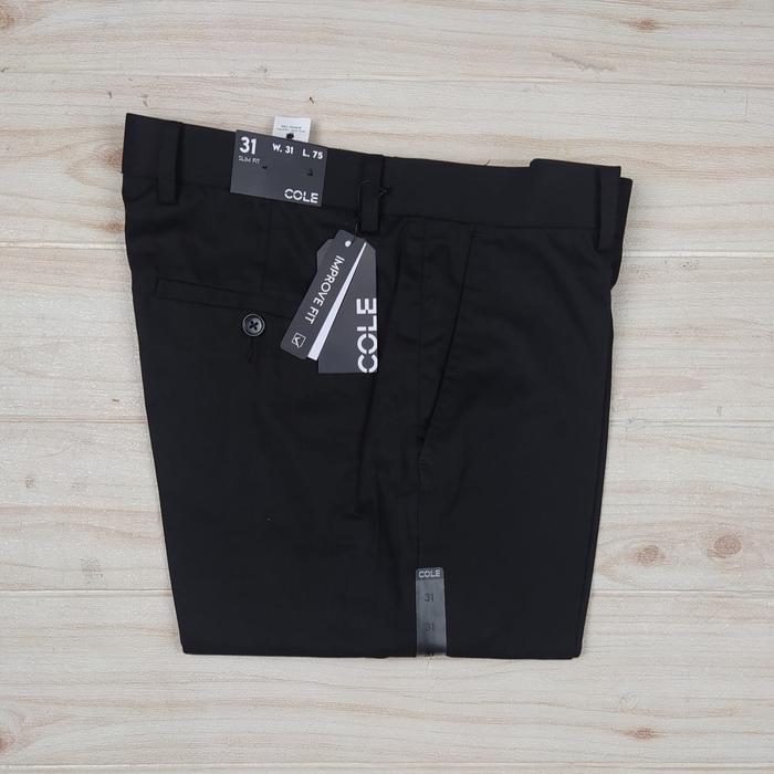 Cole Celana Panjang Formal Kerja Pria Cowok Hitam Krem Khaki Crem Reguler Slimfit Kantor Bahan - Cl-Hitam Slimfit, 32