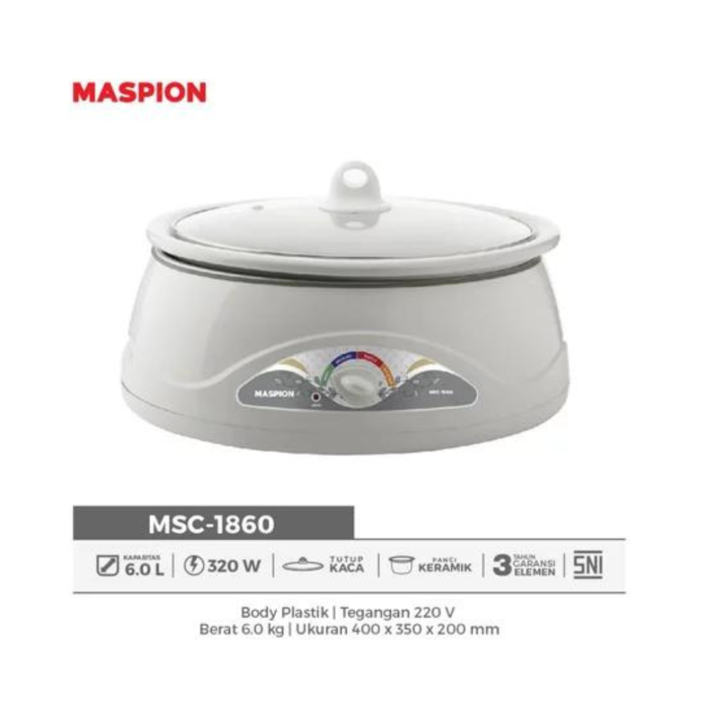 Maspion Slow Cooker 6 Liter MSC1860 - Slow Cook Ceramic Pot MSC 1860 Warna Putih