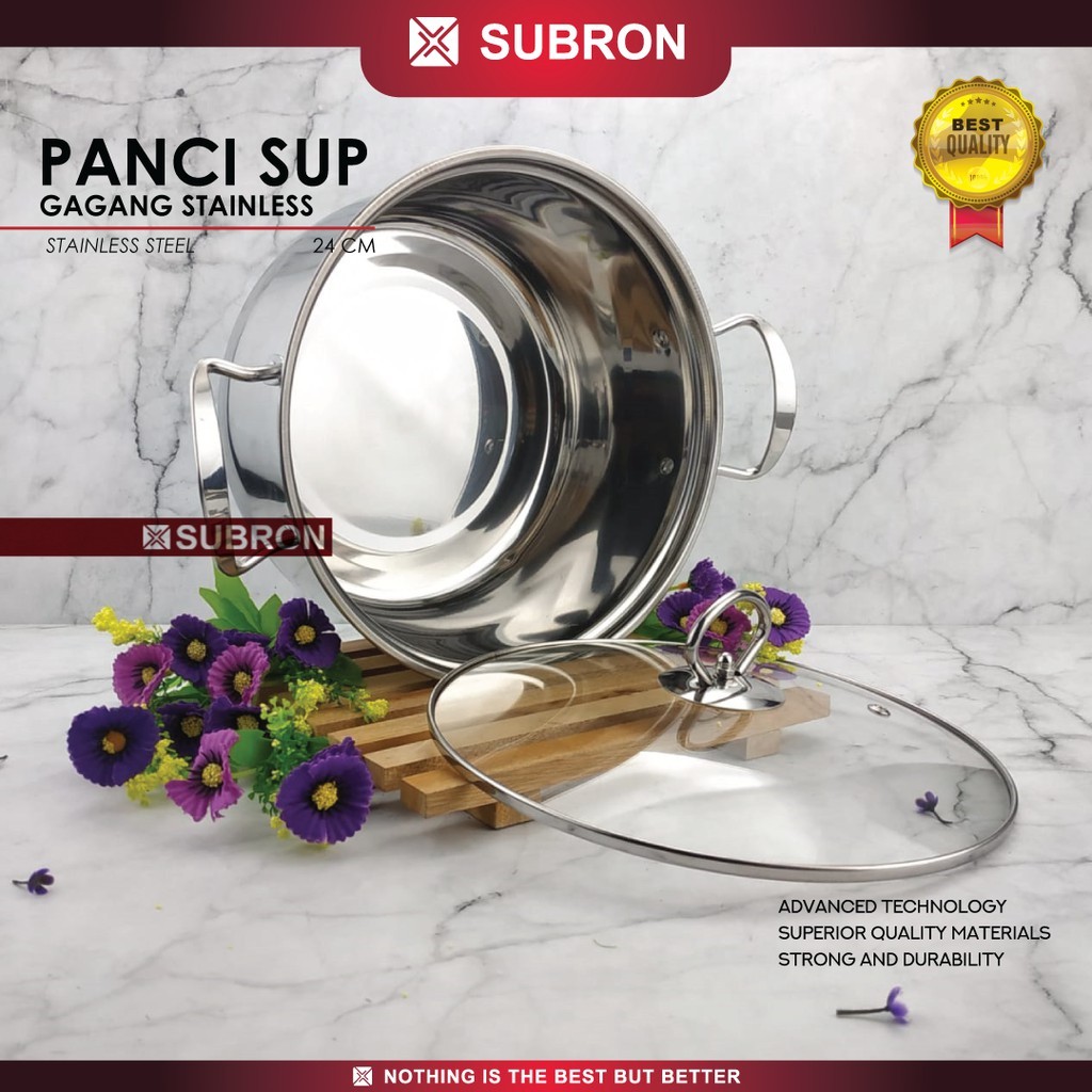 SUBRON Panci Sup Soup Pot 22cm 24cm Stainless Steel Tutup Kaca Gagang stainless BOX