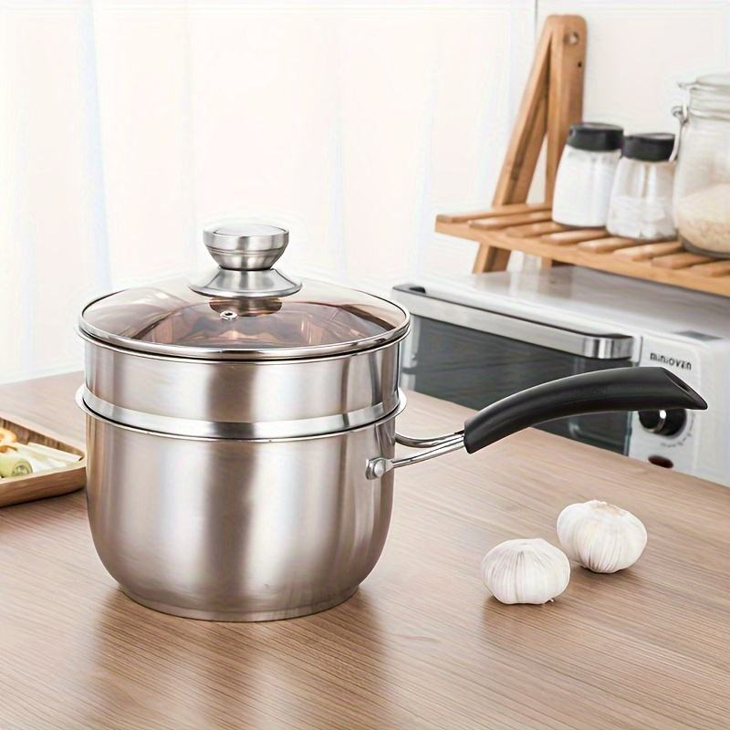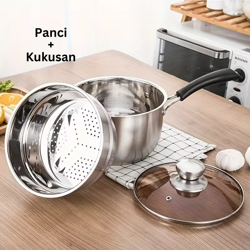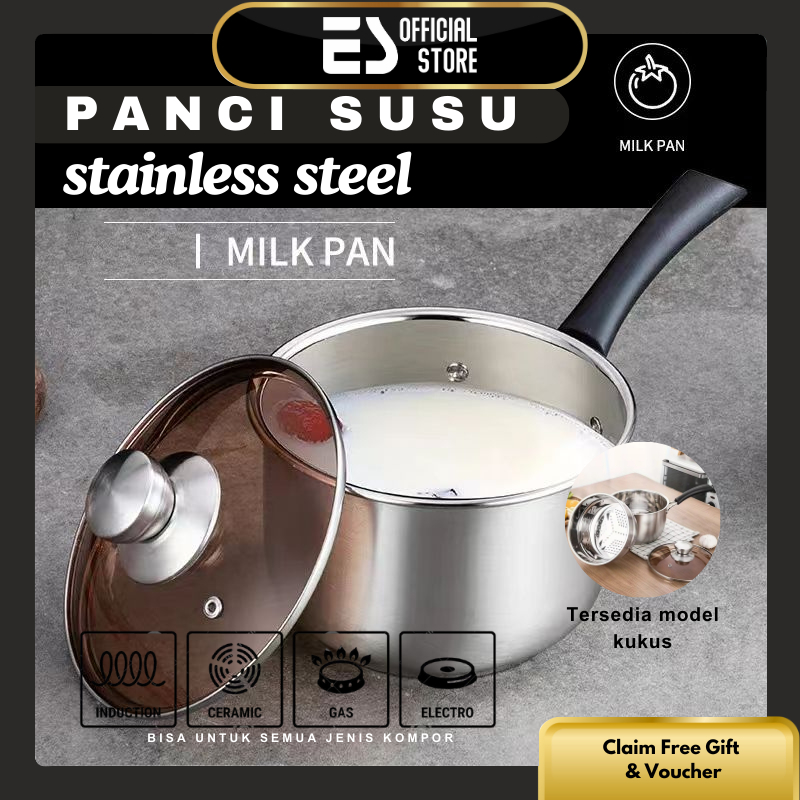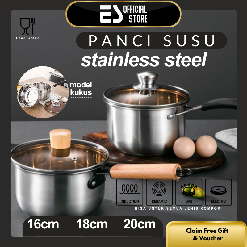 ES Panci Susu Stainless 16cm/18cm/20cm Milk Pot Kukus Tebal Tutup Kaca