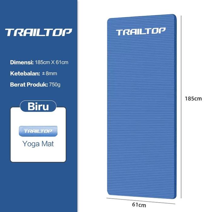 [READY] TrailTop Matras Olahraga NBR Yoga Mat With Tas Matras Yoga Anti Slip Karpet Olahraga Tebal 10 mm - Biru-8mm
