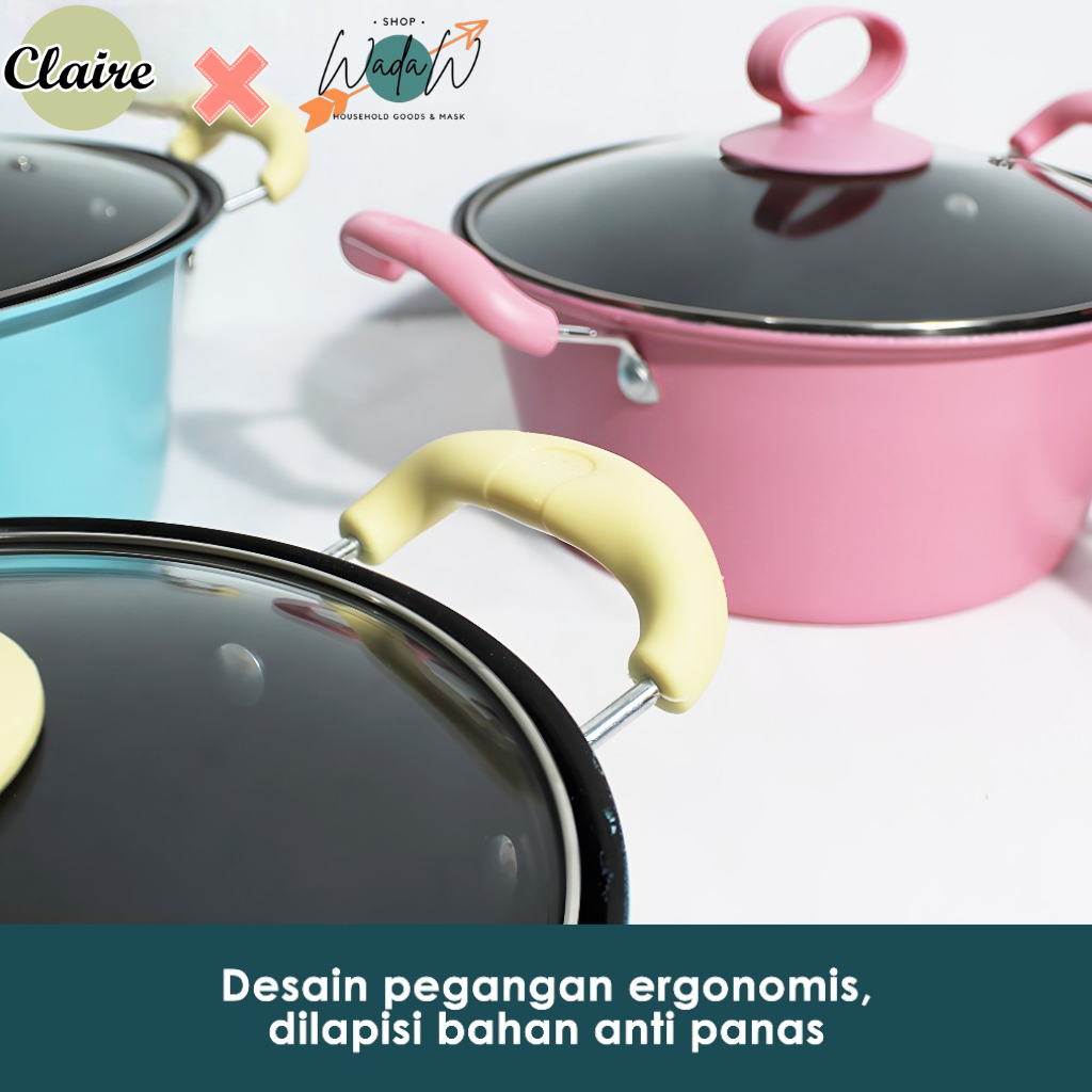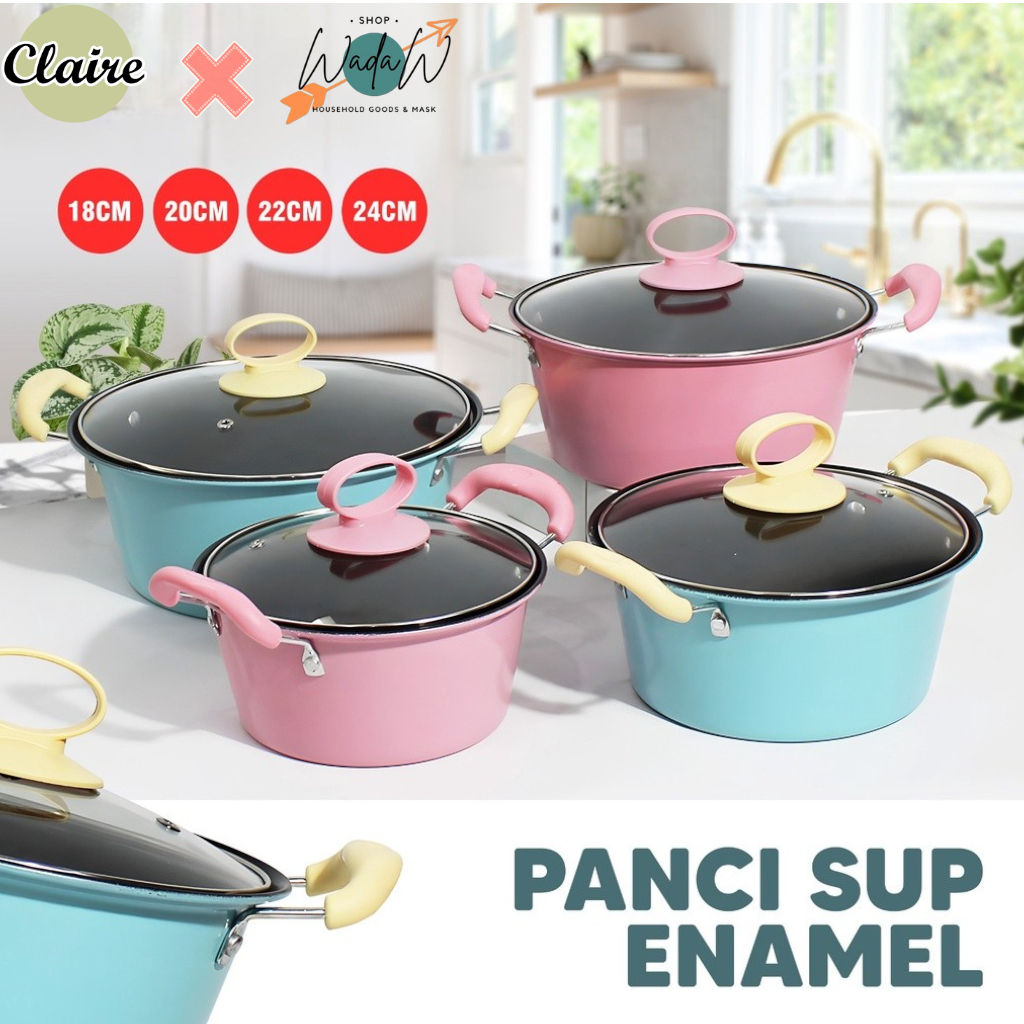 Wadaw Official X Claire / Panci Sup Enamel Tutup Kaca / Soup Pot Panci Susu Enamel