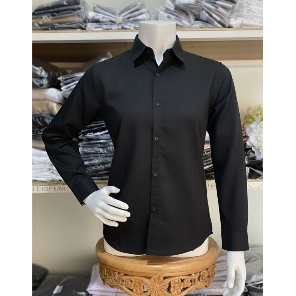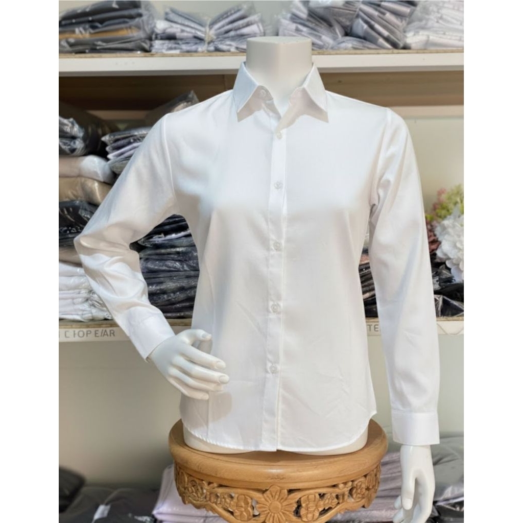Kemeja Wanita / Kemeja Cewek Polos Lengan Panjang Slimfit Hem Wanita Polos Kantor Hitam Putih Maroon Navy Kasual Pakaian