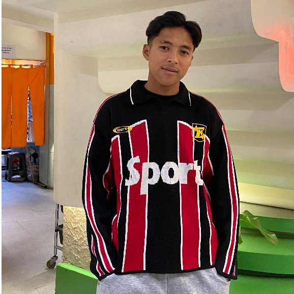Endye.Id - Knitwear Boxy Sentry Hitam Football Knit Switer Unisex /Sweater Rajut Pria & Wanita
