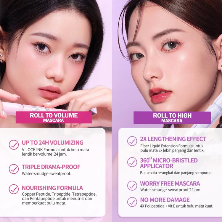 BNB barenbliss Roll To Volume & Roll To High Mascara 8g Maskara Tahan 24 Jam Volumizing Lengthening Waterproof Smudgepro